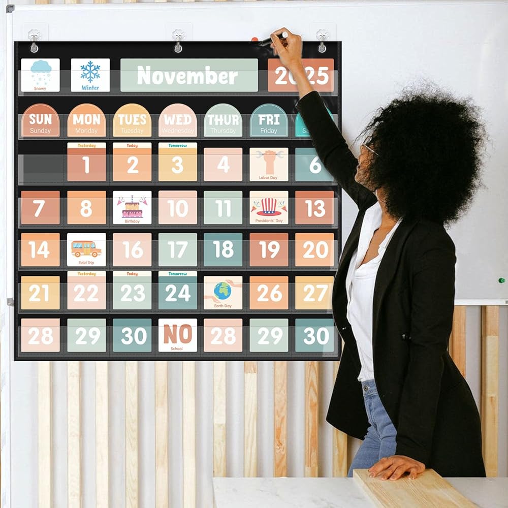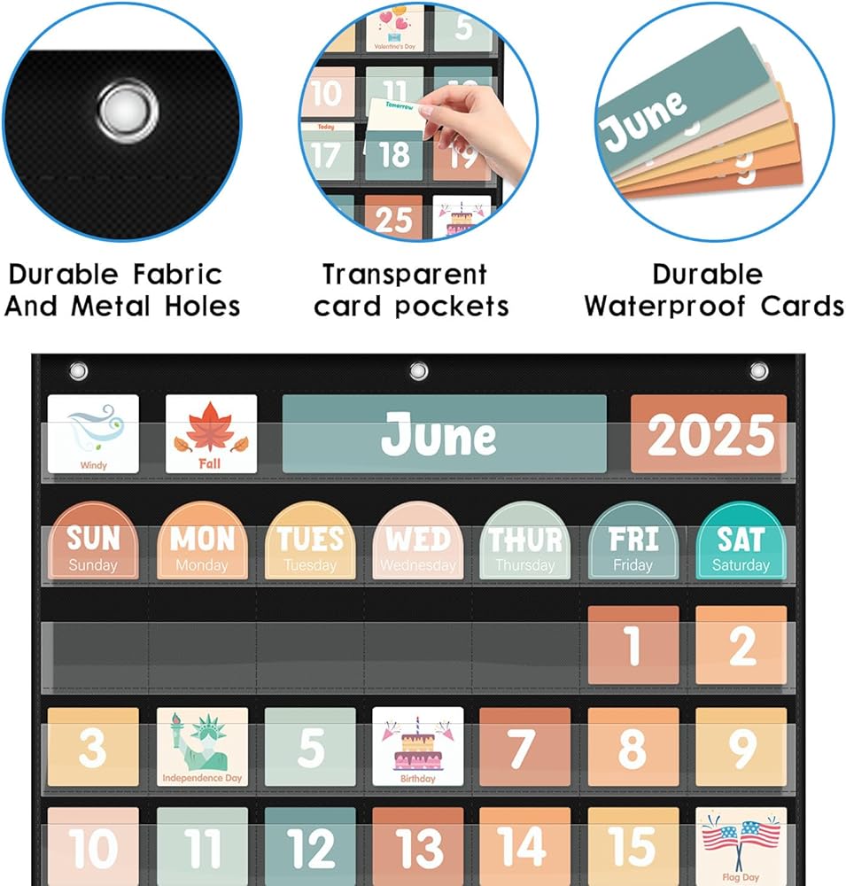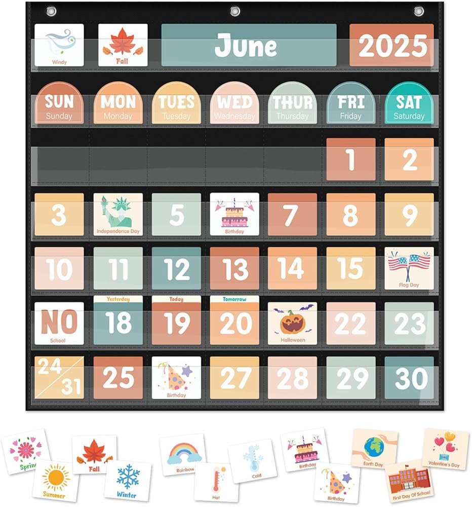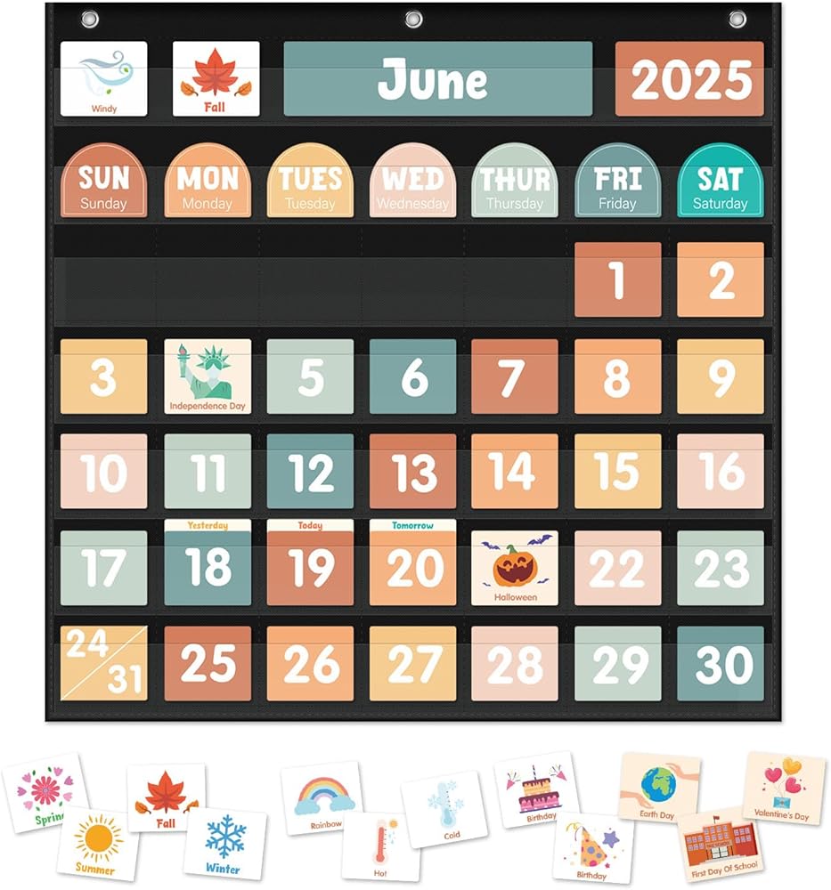 【مصمم خصيصًا للأطفال - مصمم مع الأطفال في الاعتبار ، هذه المجموعة ملونة بألوان زاهية ، وبسيطة للغاية لمتابعتها مثالية للأطفال الصغار. من خلال مخطط جيب التقويم هذا ، يمكن للأطفال التعرف على التواريخ والأسابيع والشهور والسنوات والمواسم والعطلات وبعض الأنشطة