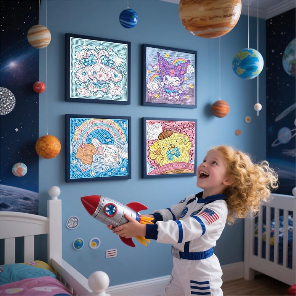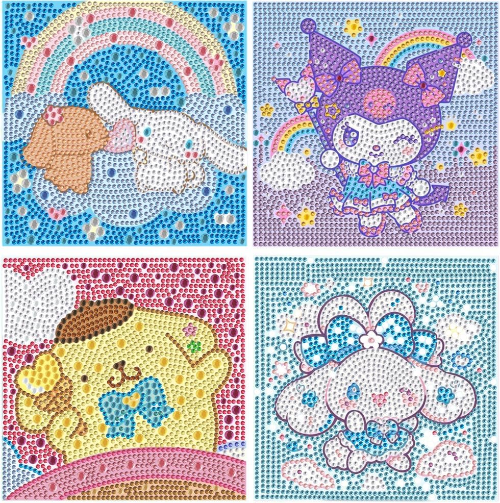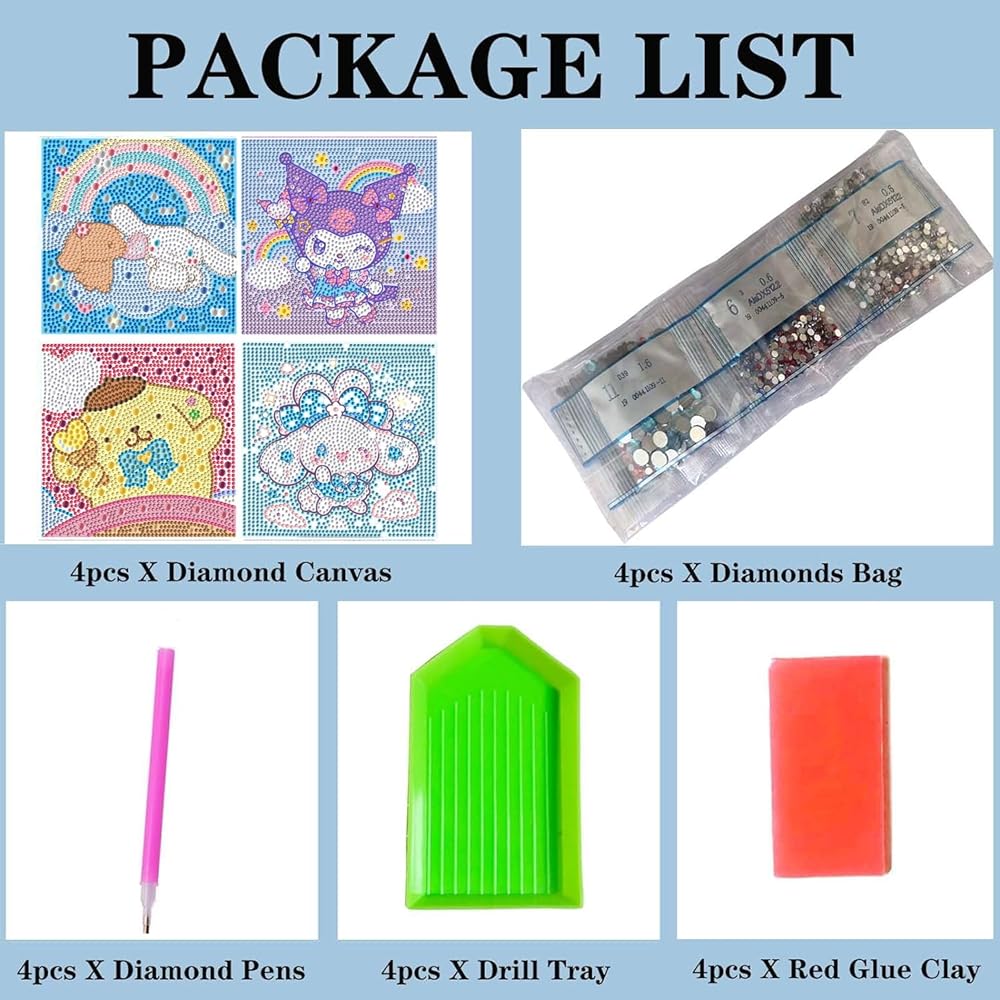 Diamond Art Kits for Kids: Package includes 4 pre-printed canvas, 4 stylus, 4 tray, 4 wax square, 1000+ colorful gems. 4 pack diamond art tools can allow several kids to DIY their art projects together