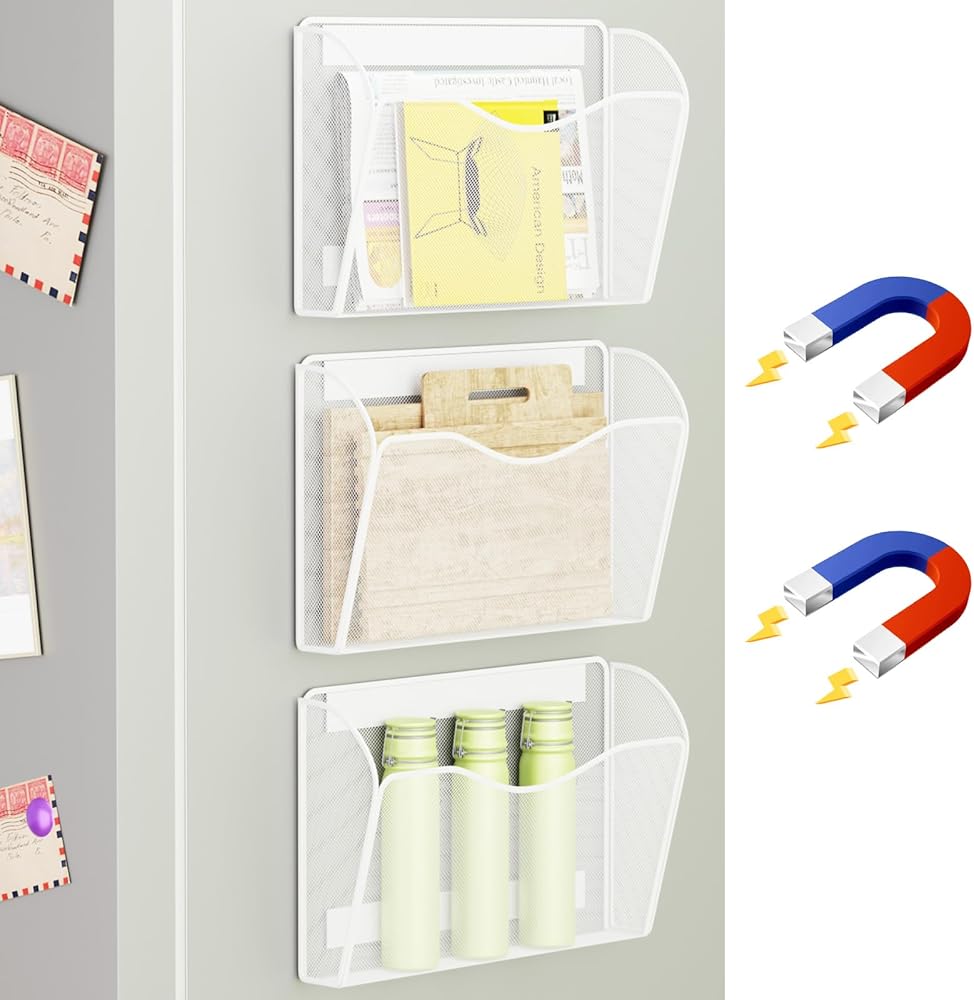 حامل الملف الفعال: يتميز حامل ملف الحائط الخاص بنا بثلاث جيوب واسعة مصممة لتنظيم المستندات والبريد والدفاتر وأكثر من ذلك ، مع الحفاظ على مساحتك خالية من الفوضى.