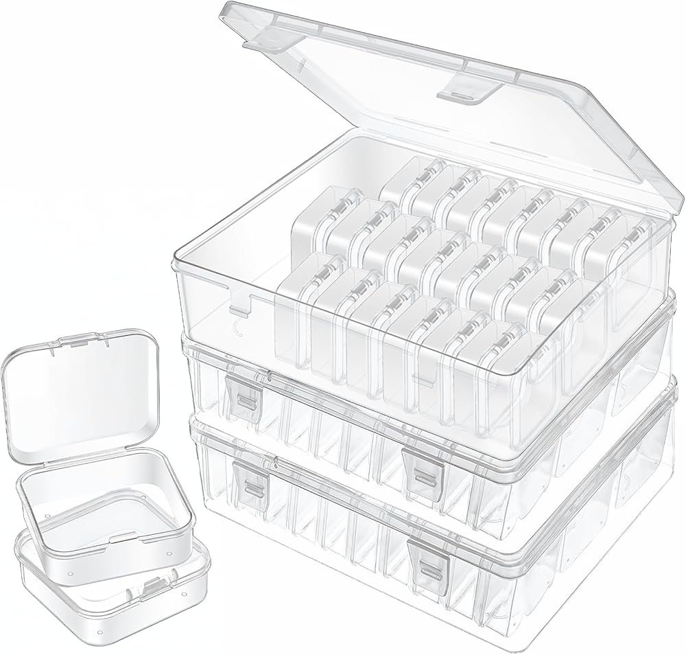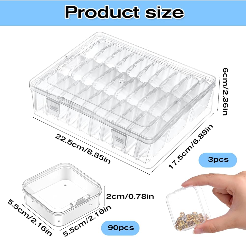 Package Includes: The bead storage container set includes 3 large outer box (8.85"" L x 6.89"" W x 2.36"" H) and 90 mini inner boxes (2.16"" L x 2.16"" W x 0.79"" H), which is perfect for organizing your beads and crafts.