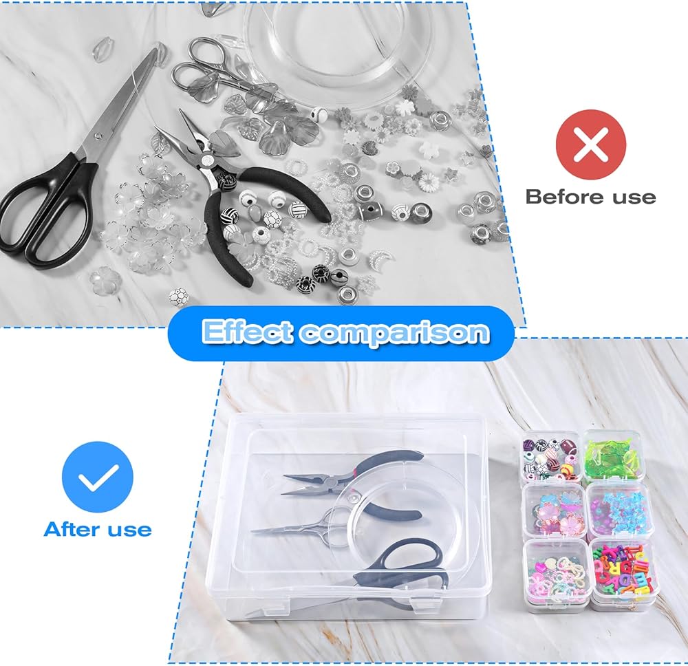 Efficient Organization: The contents of the transparent container are clearly visible, allowing you to find what you need quickly and easily, ensuring your beads and crafts are always organized.