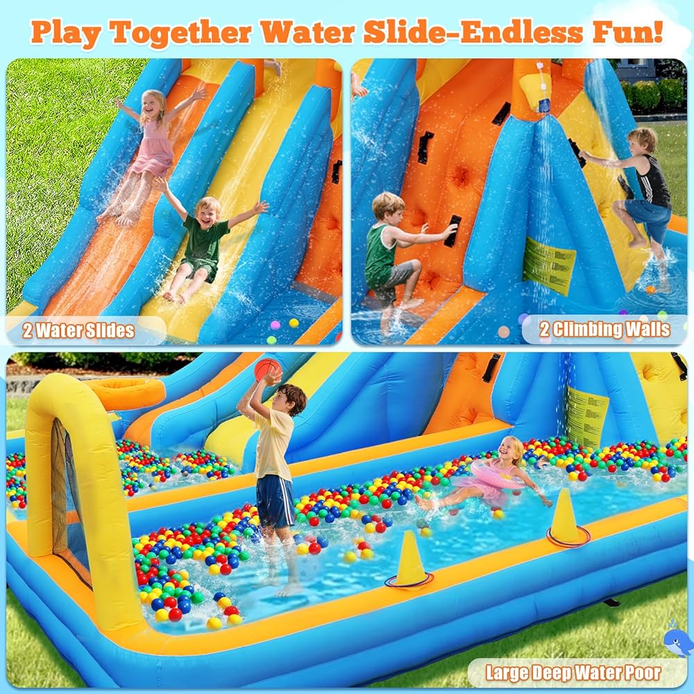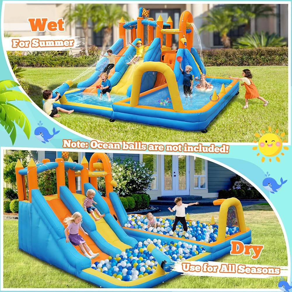 10 من 1 شريحة مائية قابلة للنفخ: يجمع منزل الارتداد النابض بالحياة بين شريحة مائية ، باب مقوس مع رش ، منطقة قفز ، جدار تسلق ، طوق لكرة السلة ، مدافع الماء ، لعبة اللوح ، لعبة الرنين ، حمامات السباحة الرائعة وحمام سباحة واط عميق. يمكن أن يوفر ساعات لا نهاية لها من الترفيه في الهواء الطلق للأطفال