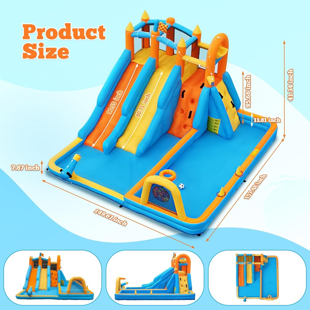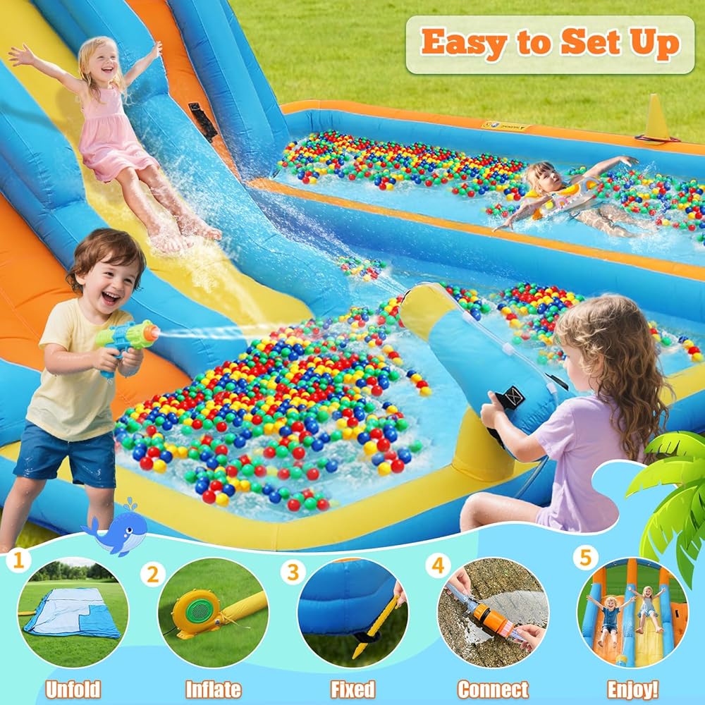 من السهل الإعداد والتخزين: مزود بمنفعة 450 واط ، ويضخّم منزل شريحة المياه القابلة للنفخ في دقائق فقط. (يجب أن يظل المنفاخ مستمرًا أثناء الاستخدام.) عند الانتهاء ، ما عليك سوى تشغيل المنفاخ ، واتركه يفرغ على الفور ، ويطويها ، وحزمها في حقيبة التخزين المحمولة. خفيفة الوزن ، وتوفير الفضاء ، ومثالية لحفلات الفناء الخلفي ، أو نزهات الحديقة ، أو اللعب الداخلي ، وخلق ذكريات بهيجة للأطفال