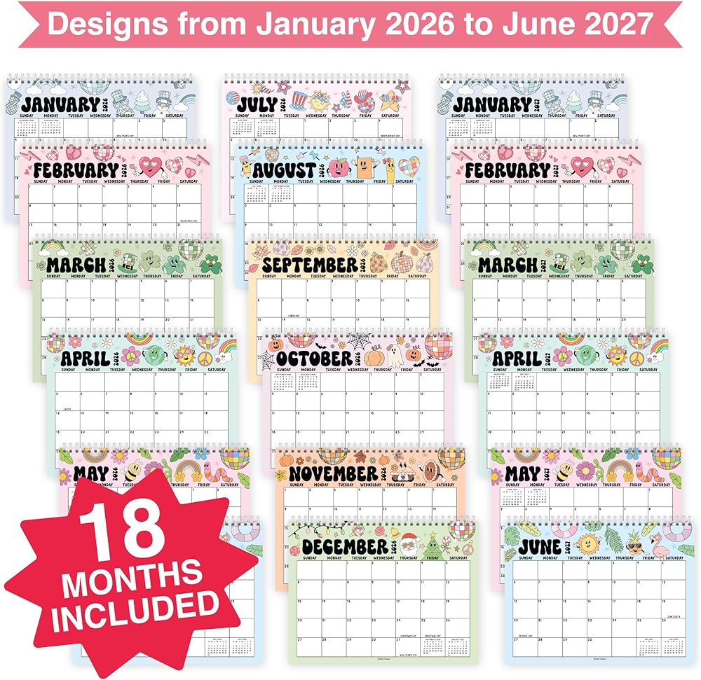 • البقاء منظم في الأسلوب. ستحصل على تقويم مكتب دائم صغير مدته 18 شهرًا ، 2026 ؛ إنجاز المزيد في وقت أقل مع هذا التقويم المكتبي 2026-2027 ، أو تقويم مكتب 18 شهر يوليو 2026-2027