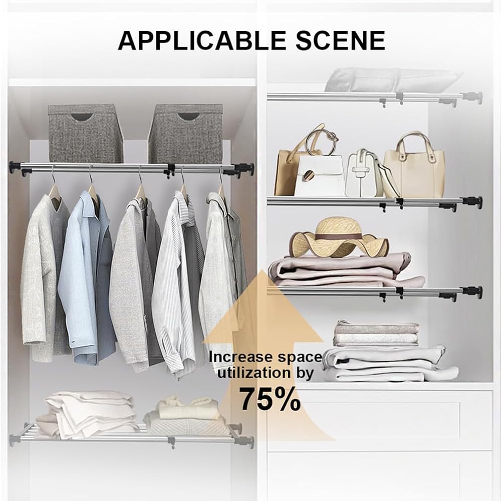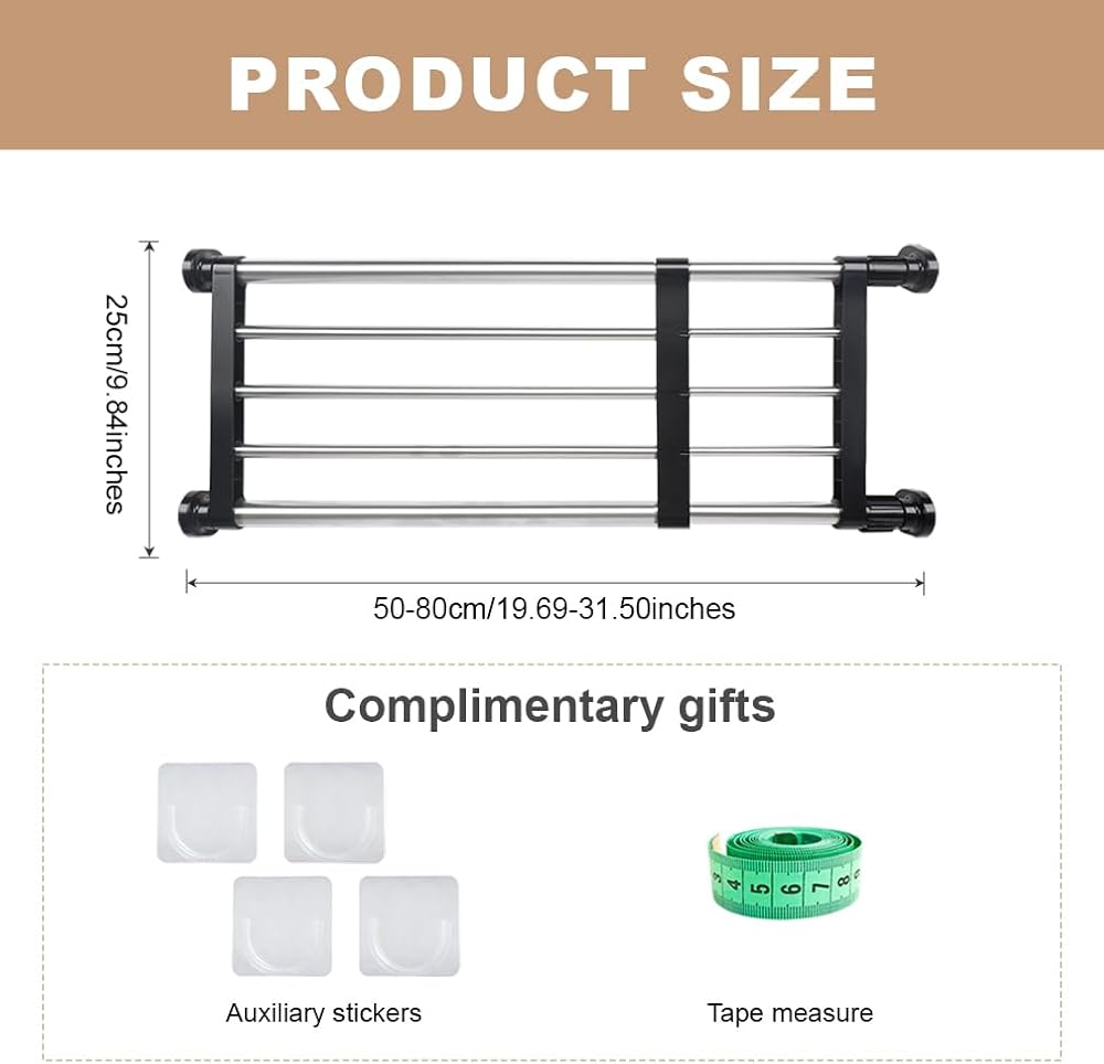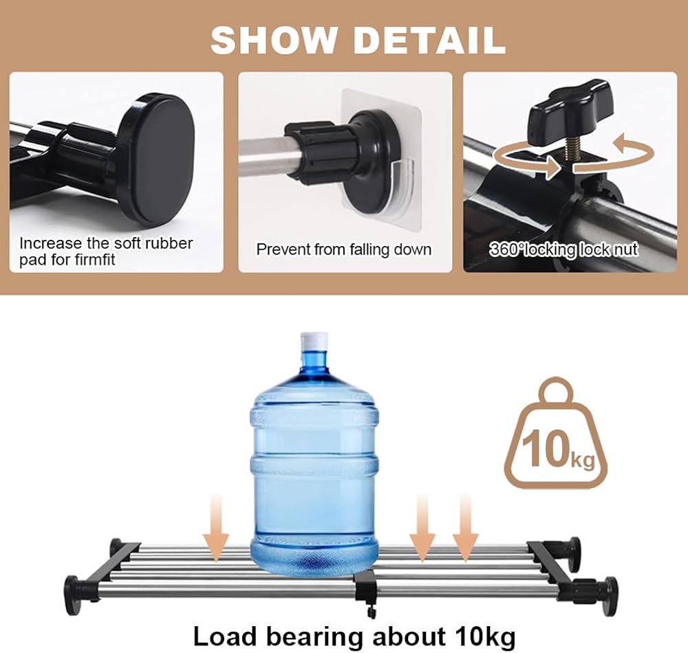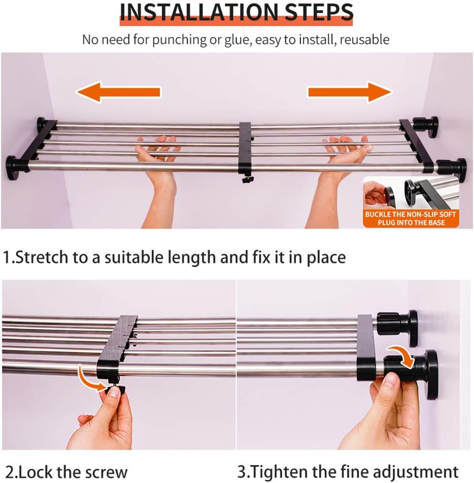 • طول قابل للتعديل: 5 تلسكوبيا أنبوب ، طول الاستخدام الموصى به حوالي 60-80 سم/23.62-31.49 بوصة ؛ العرض حوالي 25 سم / 9.84 بوصة ، لا يمكن ضبط العرض. مناسبة لتخزين الملابس والأحذية وصناديق التخزين ، إلخ. ملاحظة: يرجى قياس الحجم الذي تحتاجه قبل الشراء ، إذا كنت بحاجة إلى حجم أكبر ، فهناك العديد من الأحجام.