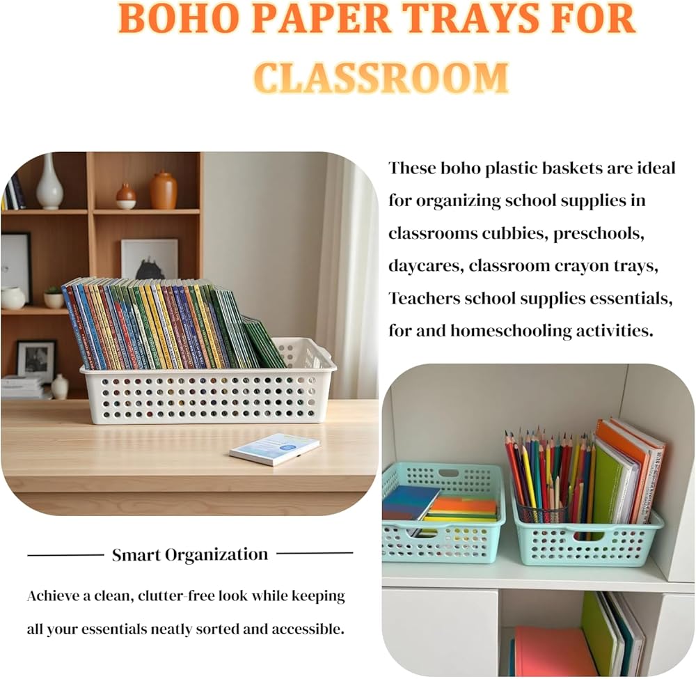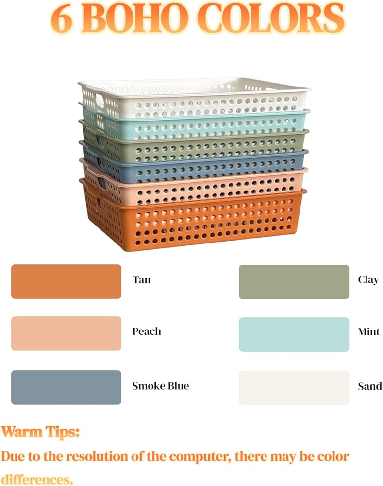 شملت الحزمة: 6 سلال الورق الملونة الزاهية باللون الأحمر والبرتقالي والأصفر والأخضر والأزرق والأرجواني! مجموعة السلة الخاصة بنا هي الأداة المثالية لتنظيم الفصل الدراسي. حافظ على تنظيم الفصول الدراسية الخاصة بك وتنظيفها عن طريق فصل الواجبات المنزلية أو الأعمال الفنية أو الورق أو لوازم الفصول الدراسية حسب اللون!
