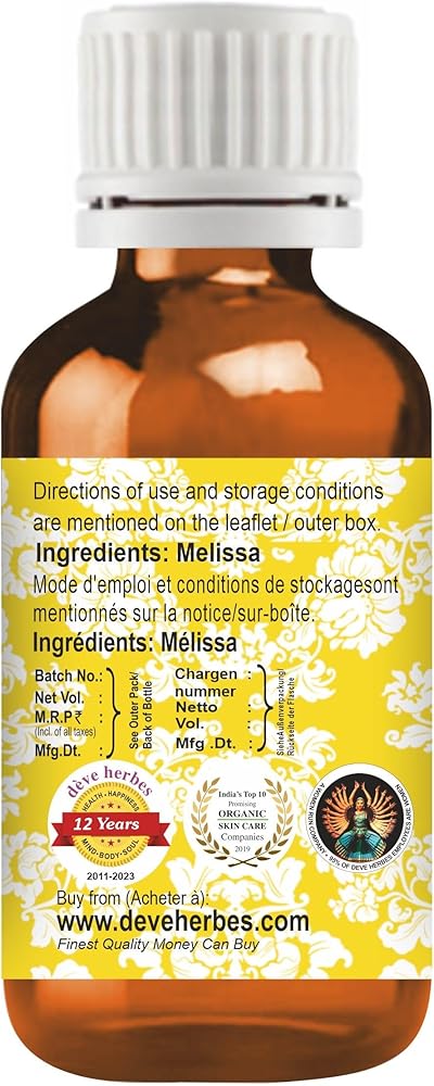 ديف هيربس زيت ميليسا العطري النقي (ميليسا أوفيسيناليس) مقطر بالبخار.