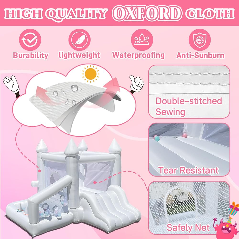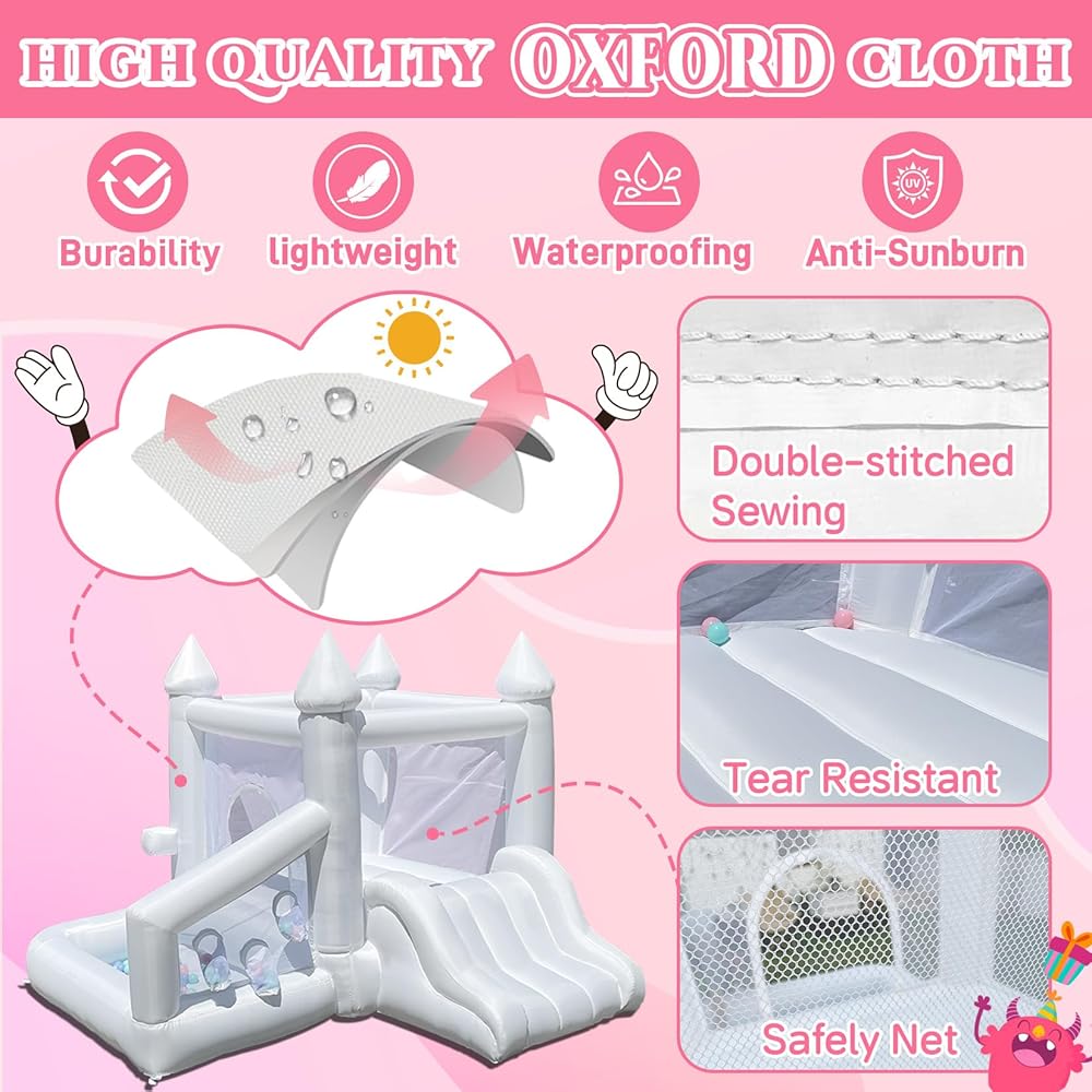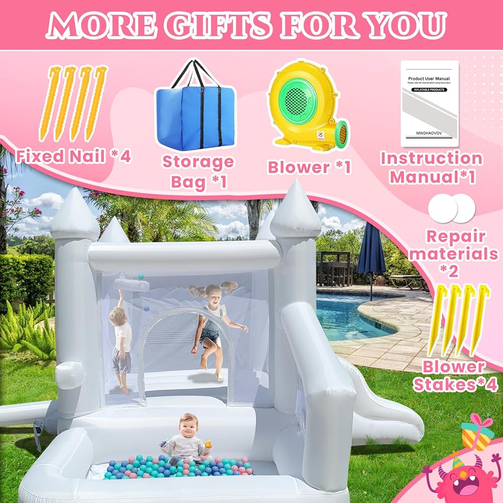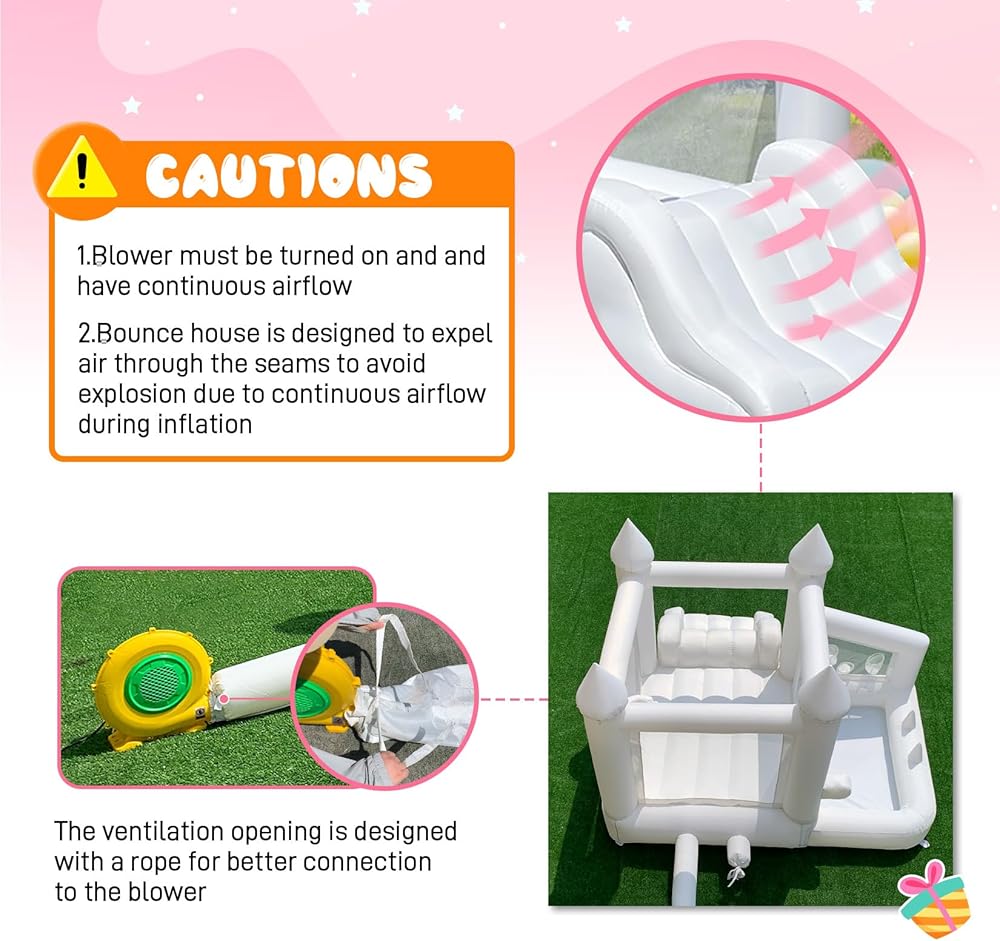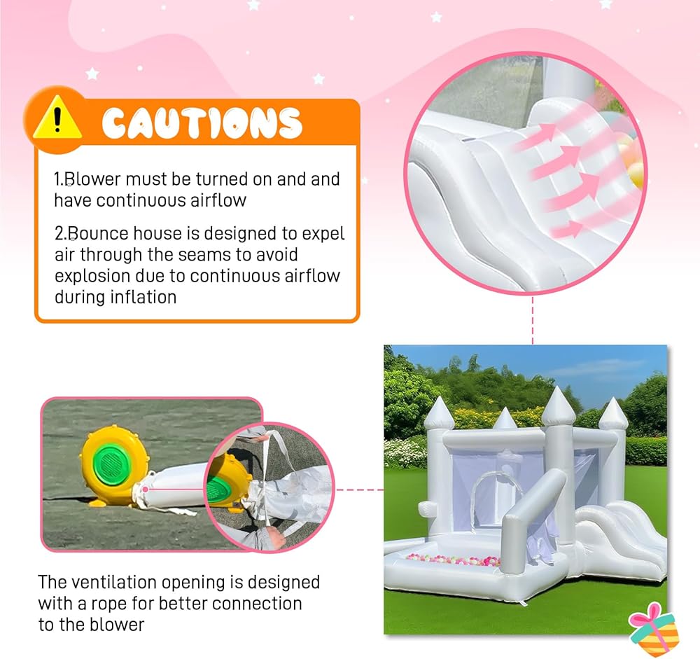 🏰【 Bounce House】 تم تجهيز منزل Bounce White مع مجموعة متنوعة من مناطق اللعب ، ويسمح Slide للمزيد من الأطفال باللعب في نفس الوقت. تم تصميم منطقة الارتداد بحافة كرة سلة تسمح بالارتداد والإطلاق.