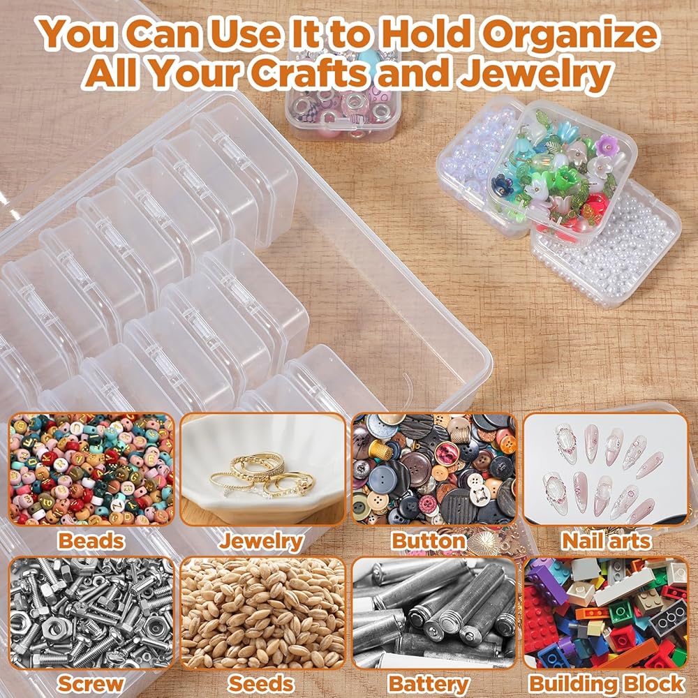 【Wide Range of Uses】The bead organizer box is very suitable for storing beads, crafts, charms, diamond paintings, jewelry making tools and accessories, gemstones, rings and necklaces, office supplies, electronic components, pills, screws, seeds, earrings, false nails, buttons, pins, hairpins, earplugs, nose clips, coins, fish hooks and other small parts. Seed beads are an ideal gift for friends and relatives who like to be well organized.