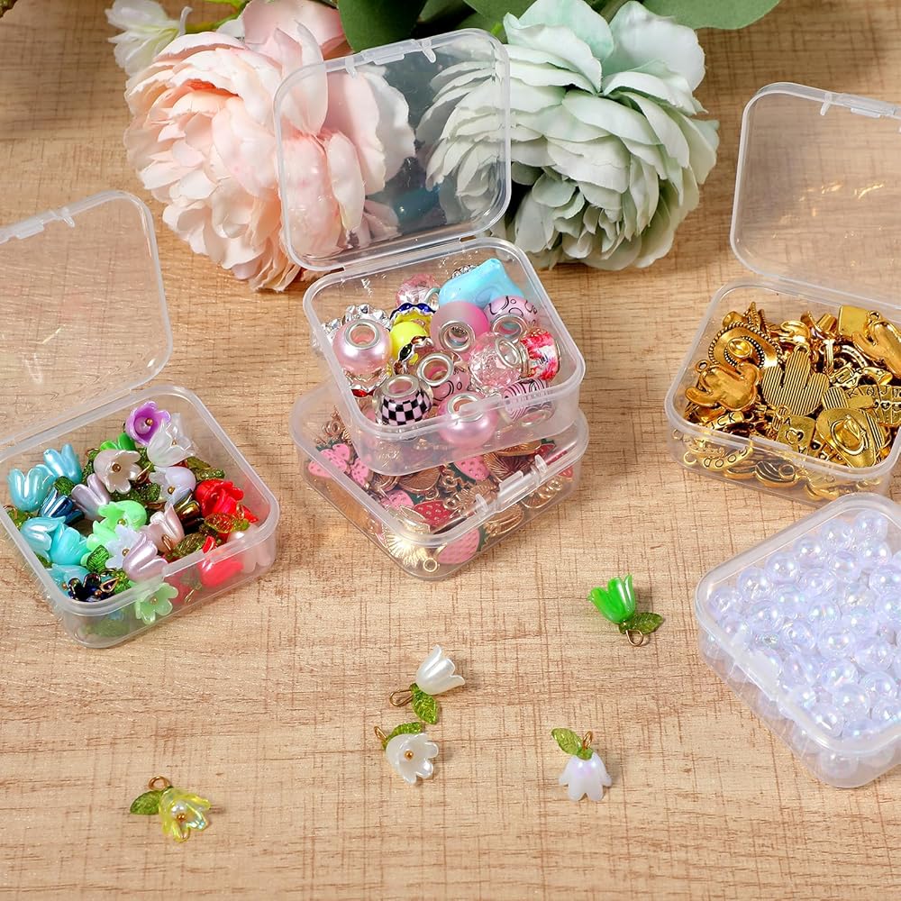 90pcs Bead Organizer Box with Hinged Lid Premium Small Medium Clear Plastic Storage Boxes Clear Bead Storage Containers Mini Plastic Bead Box for Jewelry Making Crafts Screws Seed DIY Bracelet Diamond