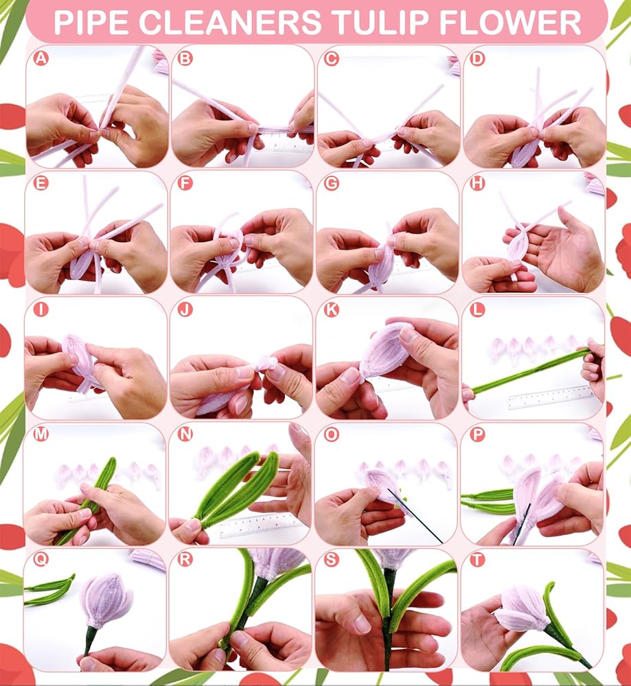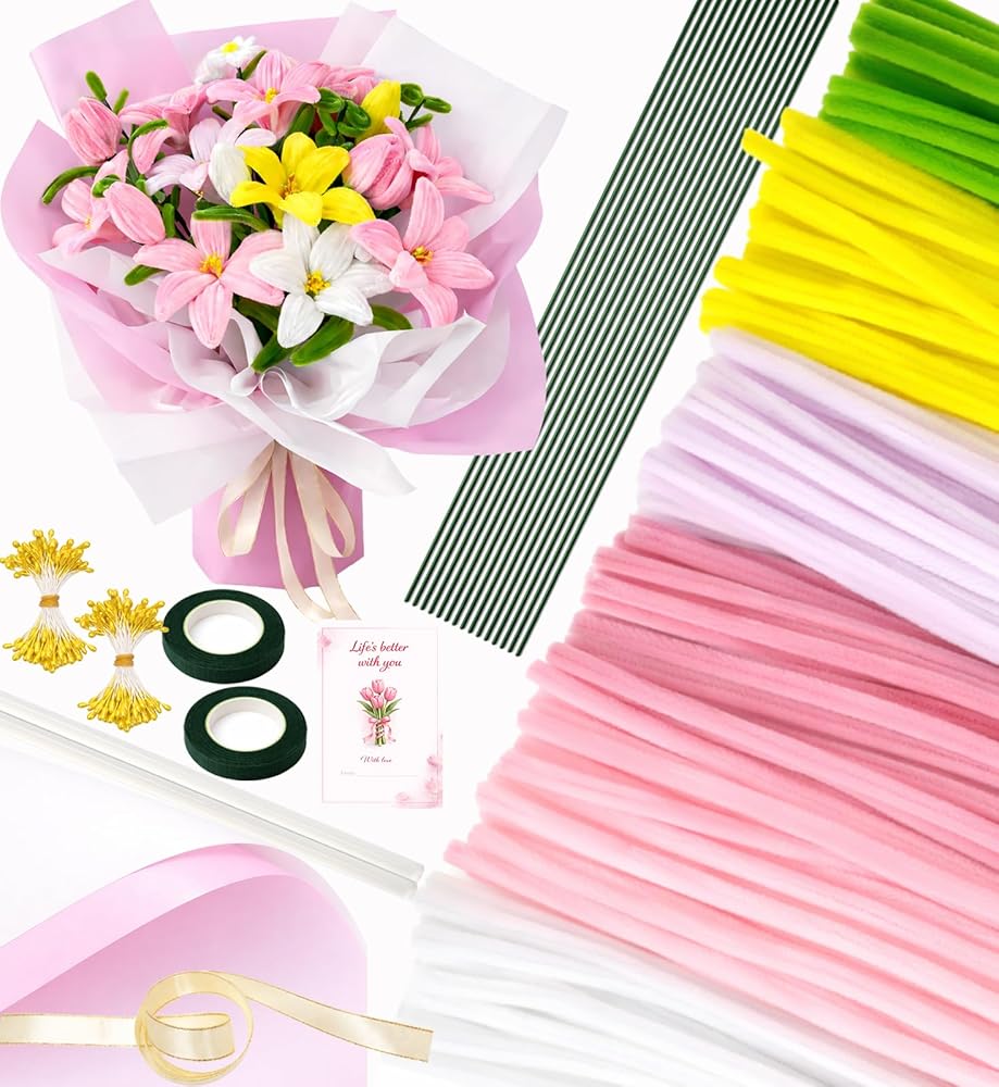 🌷【 مجموعة زهرة منظف أنابيب من نظافة الأنابيب】 مجموعة زهرة منظف الأنابيب هذه تشمل كل ما هو مطلوب لإنشاء زنبق مصنوع يدويًا مذهلاً: 300 منظفات الأنابيب الوردية المتنوعة ، 100 منظفات الأنابيب الخضراء ، 20 سلكًا زهريًا ، 100 سائق ، لفة واحدة من الشريط ، حاكم ، عصا خشبية ، 2 أشرطة ، ورسائل فيديو خطوة.