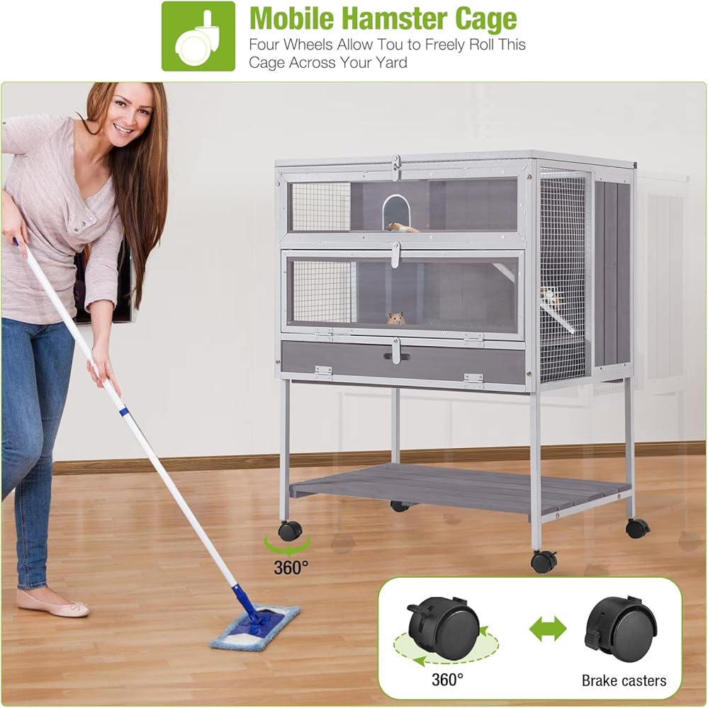 - 【قفص الهامستر الفسيح】 الأبعاد: 27.6 "L x 19.7" W x 35.4 "H. تبدو جذابة وواسعة ، مما يعني أن الهامستر لديك مساحة كبيرة للعب والاستكشاف