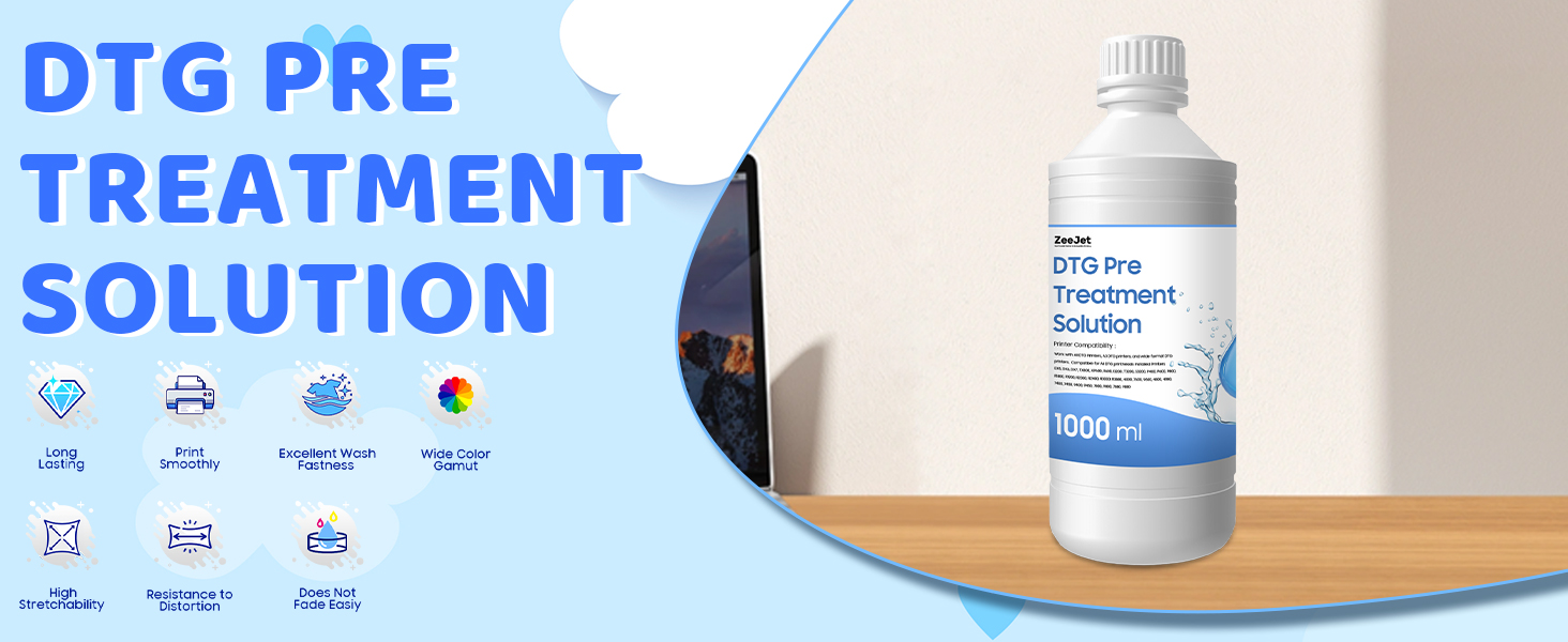 محسّن للطباعة DTG: يخلق حل المعالجة المسبق Zeejet DTG طلاءًا متساويًا على الأقمشة ، مما يسمح للحبر الأبيض بالربط بشكل آمن وإنتاج مطبوعات حية وحادة وطويلة الأمد