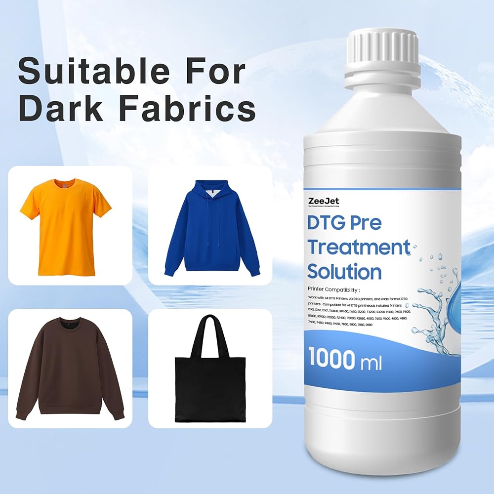 ما هو موجود في الصندوق: 1 × Zeejet DTG Pre Errentment Solution 1000 مل ، سائل معجول للأقمشة ذات الألوان الداكنة ، وضعت خصيصًا للأقمشة ذات الألوان الداكنة ، مما يوفر حتى طلاءًا للطباعة النابضة بالحياة الطويلة الأمد
