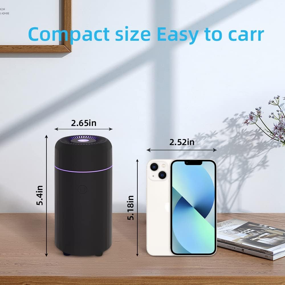 خفيف الوزن وصغير الحجم: هذا الموزع الصغير / معطر الهواء، بحجم فحم الكوك، يزن 0.32 رطل ويبلغ ارتفاعه 5.39 بوصة، خفيف جدًا ومحمول، ولكن بسعة كبيرة 100 مل، قدرة رذاذ قوية وضباب ثقيل، محمول لتوفير الترطيب والعطر في أى مكان.