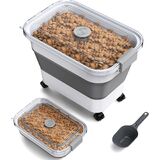 سهل التحرك: تم تجهيز صندوق طعام الكلاب الجاف بأربع عجلات قابلة للفصل ، مما يتيح لك تحريك حاوية طعام الكلاب الكبيرة دون عناء. قم بإزالة العجلات لوضعها على رف أو إرفاق العجلات للتنقل عند تخزينها مع طعام ثقيل في الداخل