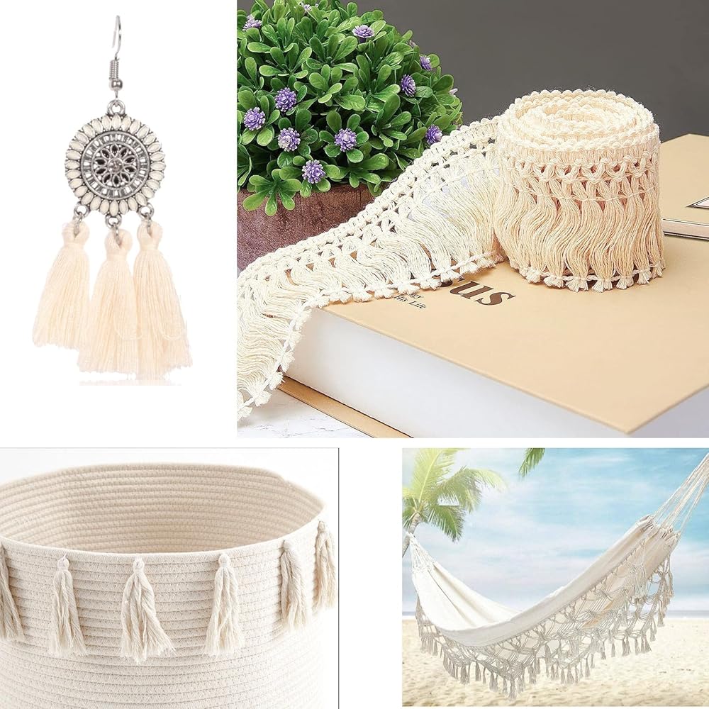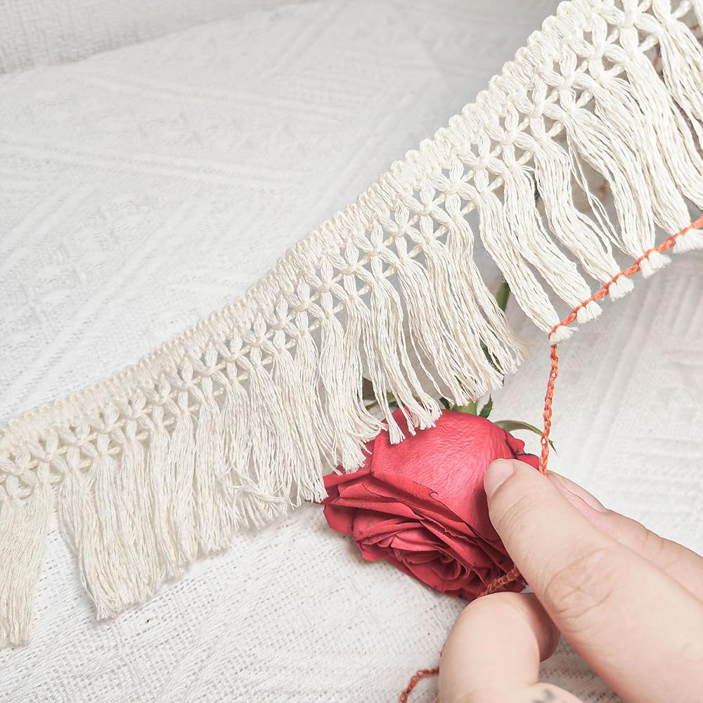 20 ياردة تايلد الدانتيل: سوف تتلقى 20 ياردة طولها 6 سم/2.4 بوصة زخرفة شرابة القطن واسعة ، بما يكفي لك لاستخدامها.