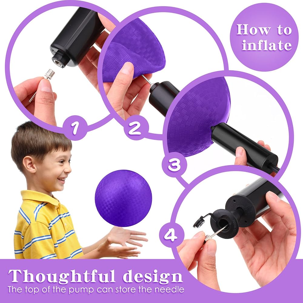 • ما ستتلقاه: هناك 24 قطعة من كرات الملعب وقطعة من الهواء في الحزمة ؛ مجموعة الركل كافية لك ولأطفالك ، أو أطفالك للعب معا ويقضي وقتًا سعيدًا ؛ ملاحظة: يتم وضع الإبرة في الجزء العلوي من المضخة ، يرجى تشغيل المفتاح العلوي والإخراج