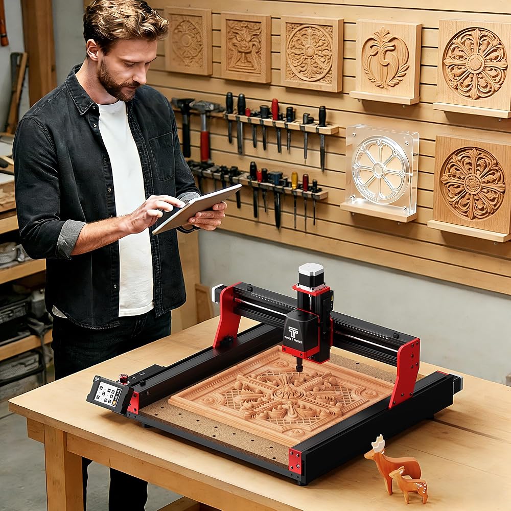 جهاز توجيه CNC معدني بالكامل من twotrees TTC450 Pro مع محرك متدرج NEMA 57 شاشة لمس 3.5 بوصة، آلة نقش 3 محاور مطورة، آلة طحن نقش لقطع نحت الألومنيوم والأكريليك الخشبي