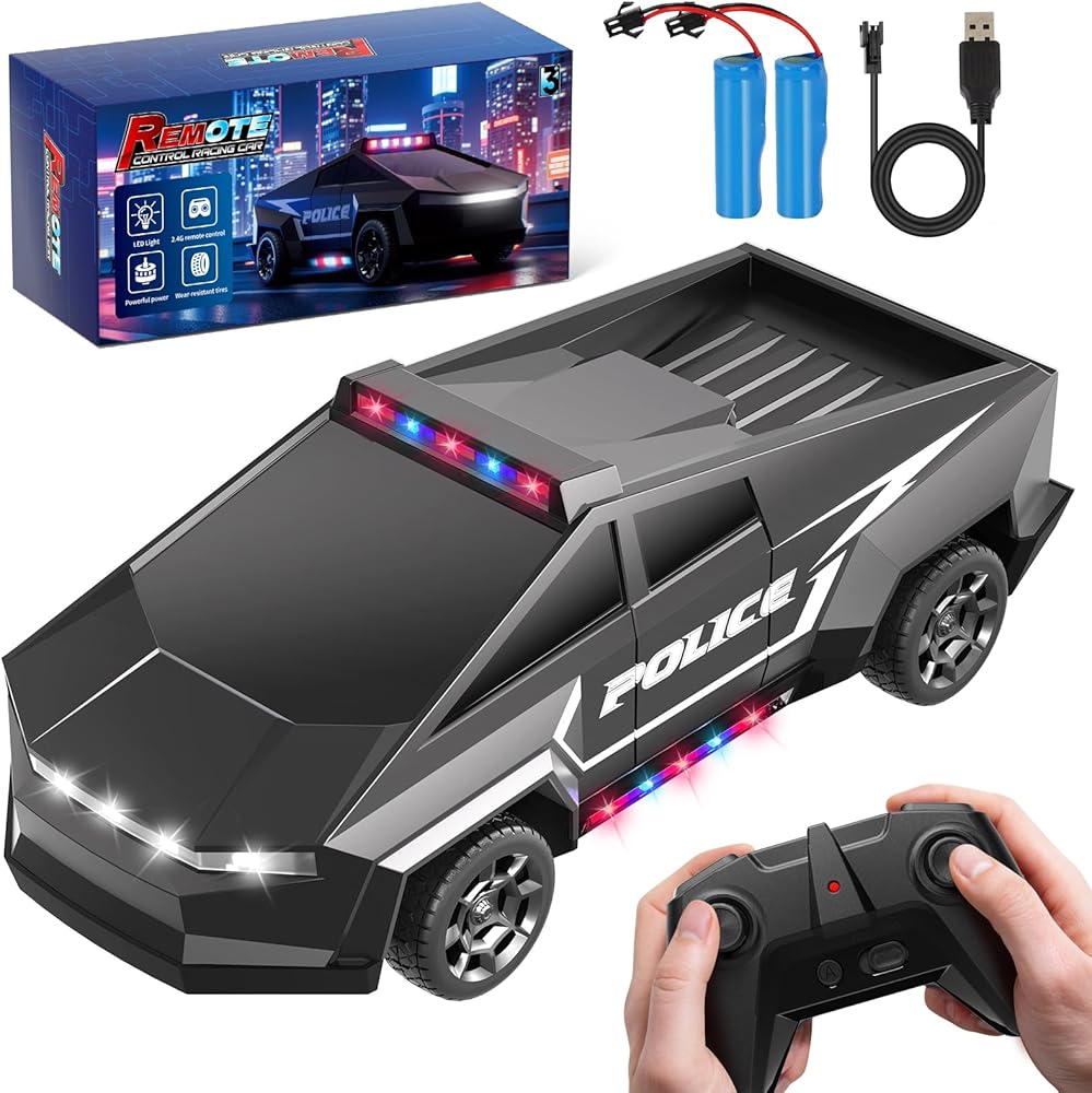 1:22 مقياس التحكم عن بعد ، جميع ألعاب سيارة شرطة التضاريس مع 2.4 جيجا هرتز التحكم عن بعد ، شاحنات ألعاب للأولاد الذين تتراوح أعمارهم بين 3 4 5 6 7 ، سباق سيارات RC مع الأضواء ، هدايا عيد ميلاد للأطفال 8-12 (أسود)