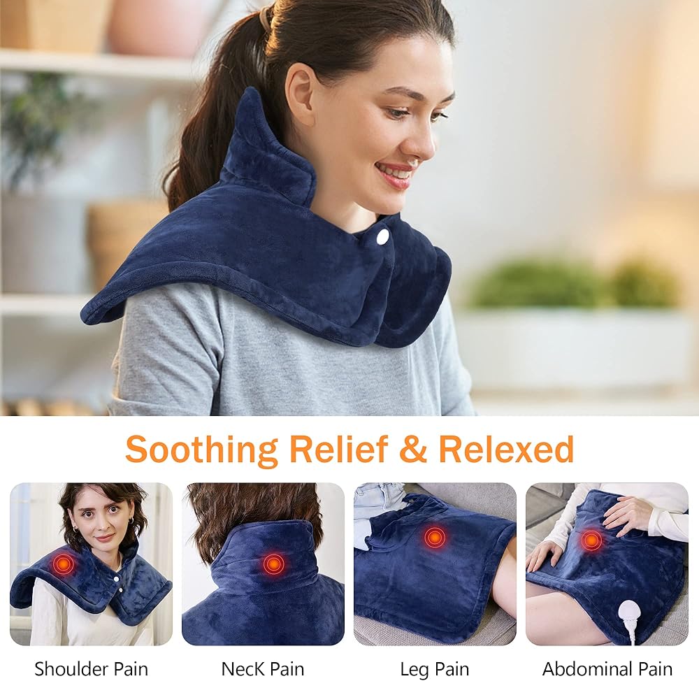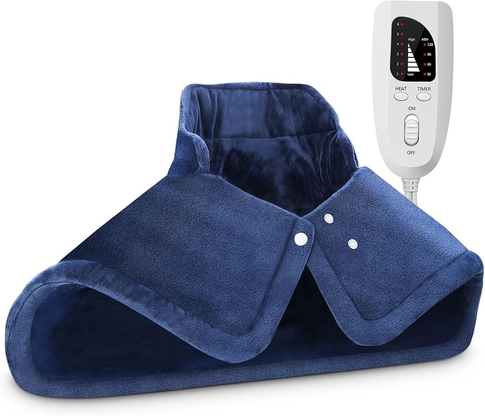 advancore وسادة التدفئة للرقبة والكتف 2 رطل الكهربائية المرجحة ساخنة الرقبة الكتف التفاف لتخفيف الآلام المحمولة وسادة الحرارة السريعة آلة قابلة للغسل مع 6 إعدادات الحرارة 4 السيارات قبالة للنساء الرجال أمي أبي