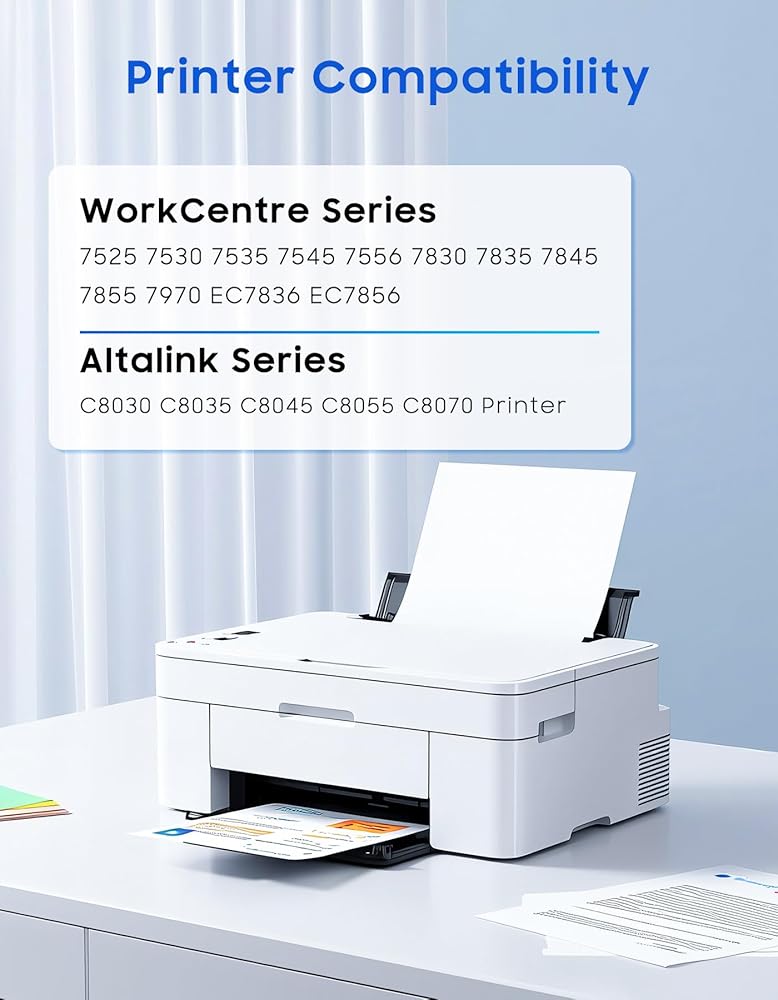 • نماذج الطابعة المتوافقة: Altalink C8030 ، C8035 ، C8045 ، C8055 ، C8070 ؛ WorkCentre 7525 ، 7530 ، 7535 ، 7545 ، 7556 ، 7830 ، 7835 ، 7845 ، 7855 ، 7830i ، 7835i ، 7845i ، 7855i ، 7970 ، 7970i ، EC7836 ، EC7856 PRINTER