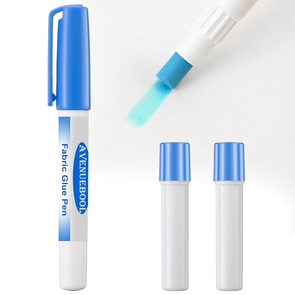 قلم الغراء النسيج: هذا قلم غراء رائع يحمل مؤقتًا طبقات صغيرة في مكانه للطي أو الدوران ، ولا حاجة إلى دبابيس ، مما يجعل الخياطة أسهل بكثير ولن يلحق إبر آلات الخياطة. كما أنه يستخدم لتفكيك الورق الإنجليزي أو إرفاق زين لإطلاق القوالب دون صراع