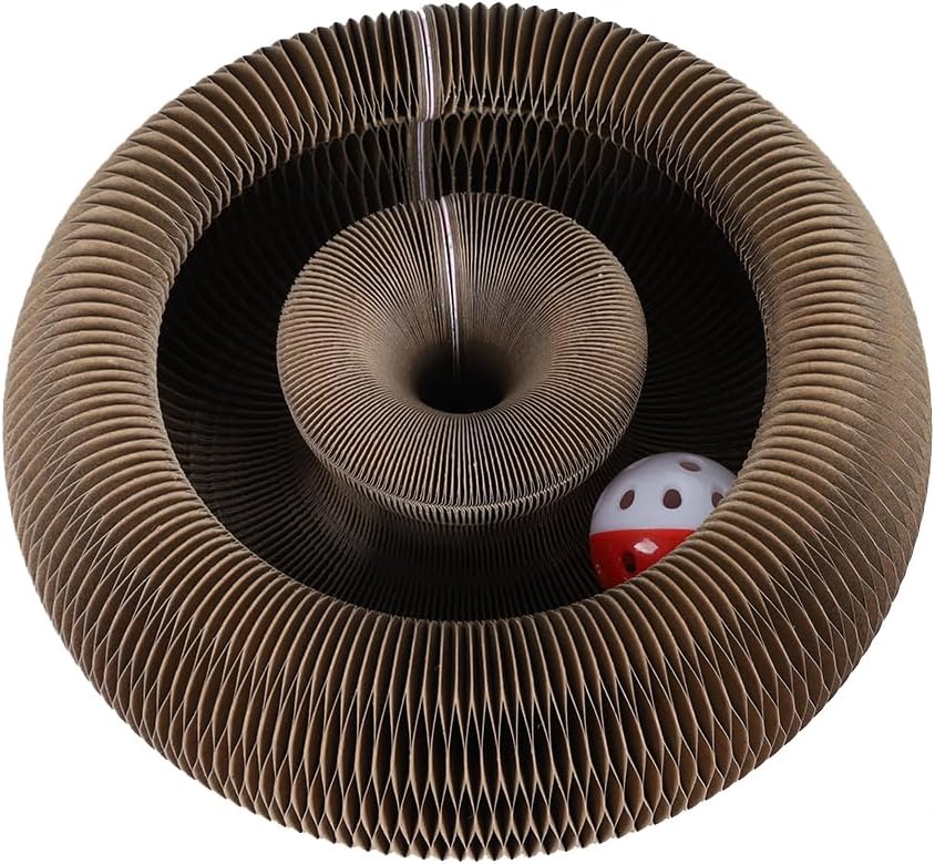 Quality Choices Foldable - The Kitty Kurlz Cat Toy is the perfect toy for your furry friend. It includes a play ball, track, house and round scratching board for a complete entertainment package. The Magic Organ Cat Scratching Board is easy to assemble and the foldable design allows for easy storage and travel.