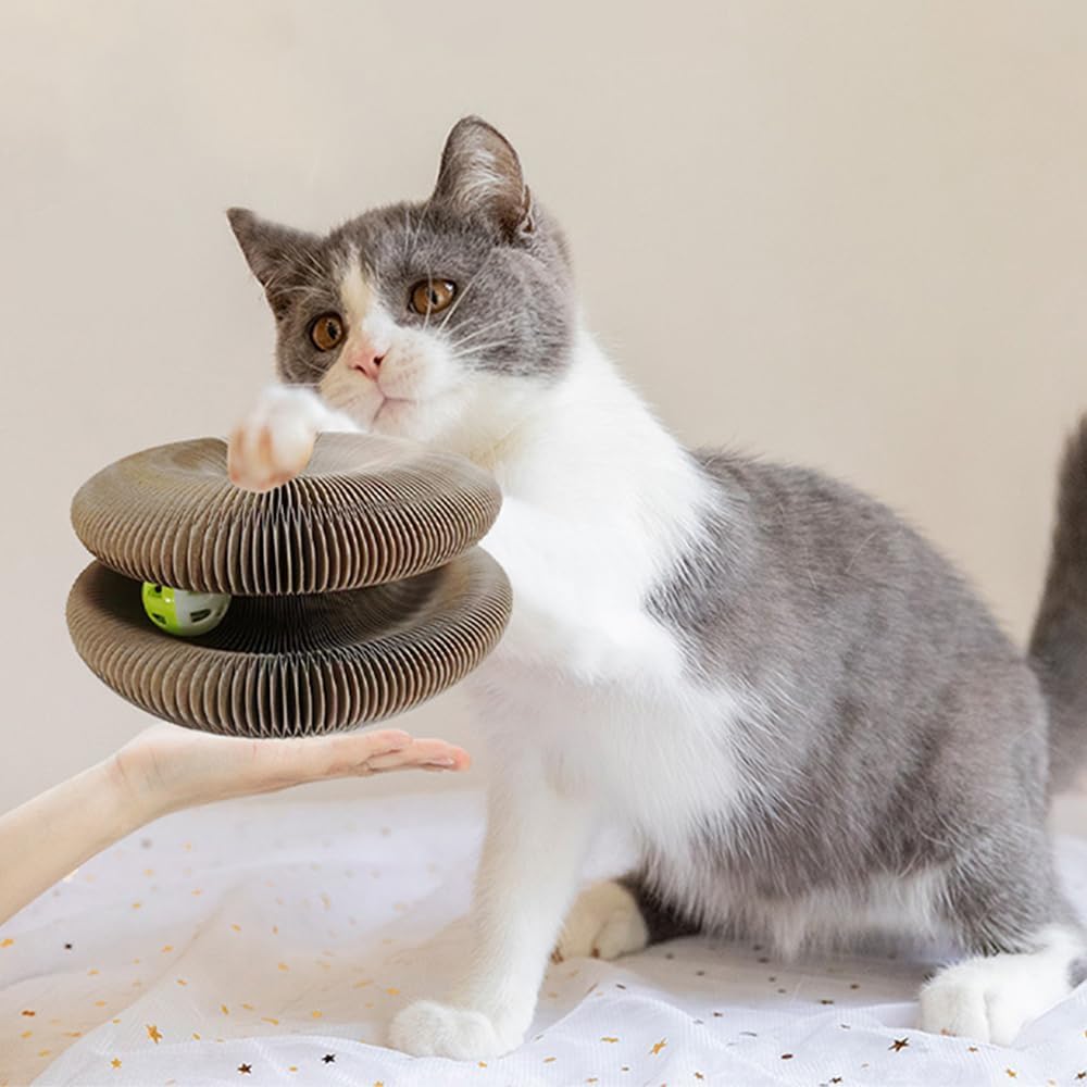 Cat Toys for Indoor Cats - Magic Organ Cat Scratching Board is made of high quality environmentally friendly corrugated paper with strong magnet adsorption, wear-resistant and scratch-resistant; it is made of mesh honeycomb density thickening type design, with tight seams, and does not hurt the claws.