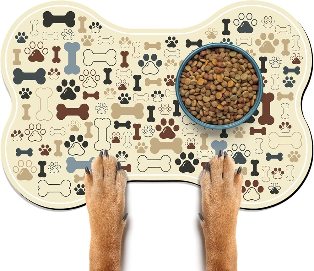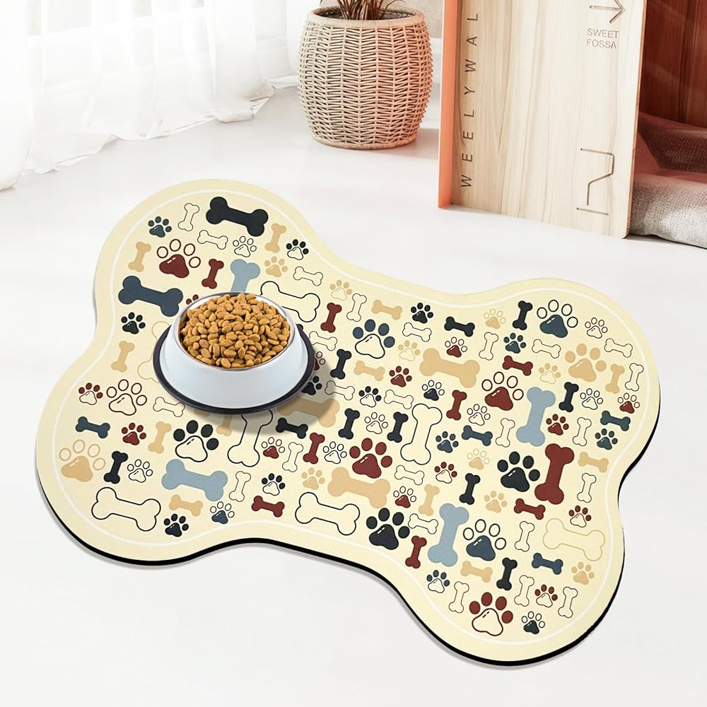 Dog & Cat Food Mat Bone Shaped Pet Feeding Mat Quick Absorb Water Bowl Placemat with Rubber Backing Indoor Floor Stain Resistant Pet Accessory Supplies