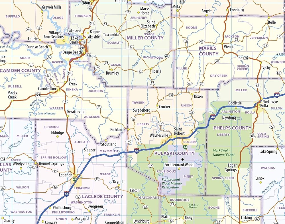 Missouri Laminated Wall Map (42" Wide x 38" high)