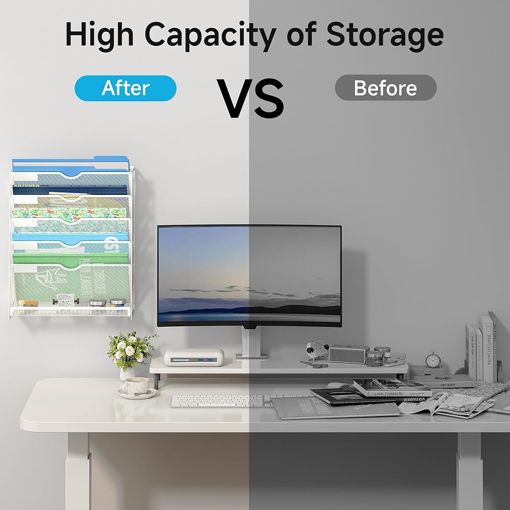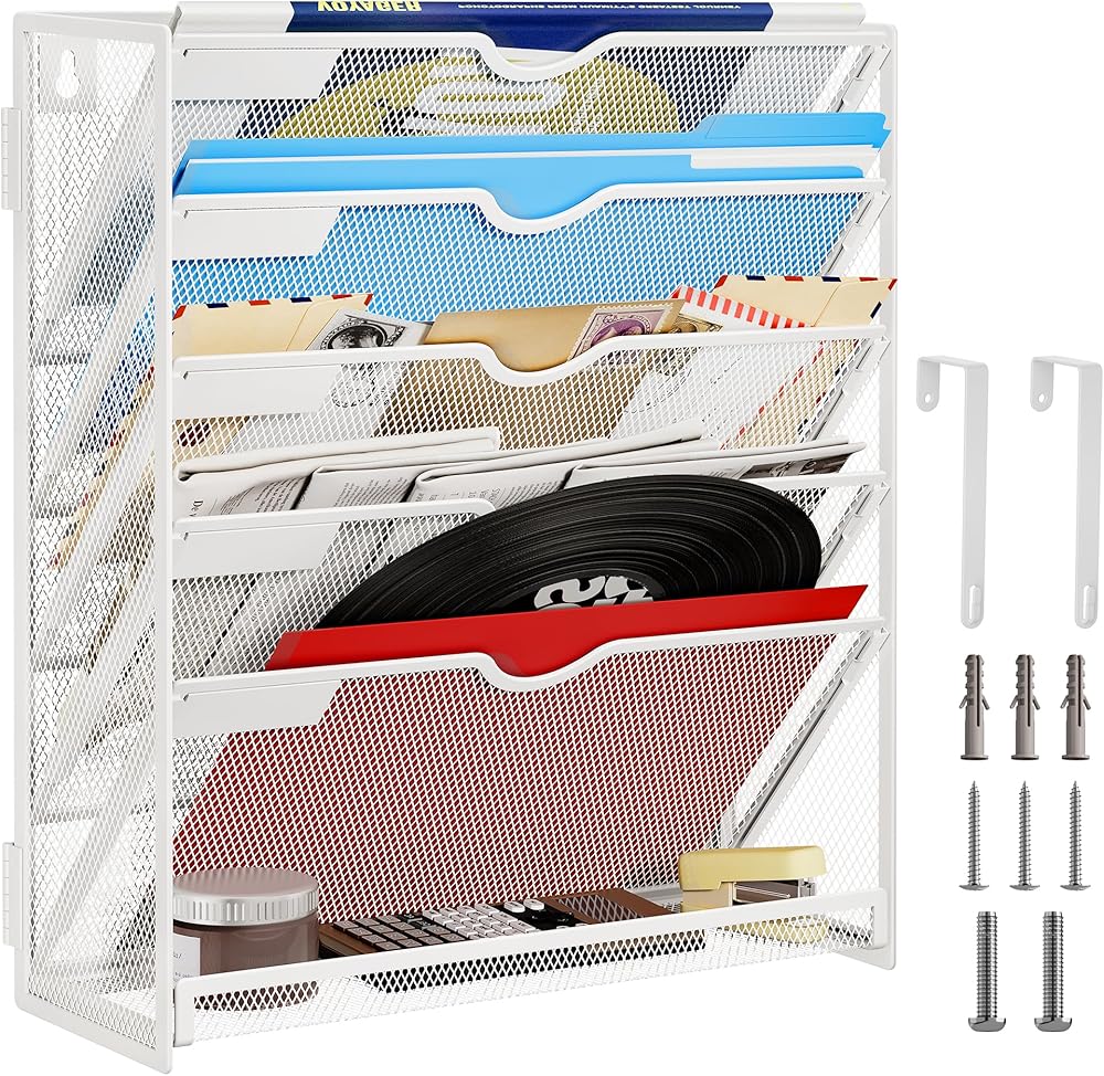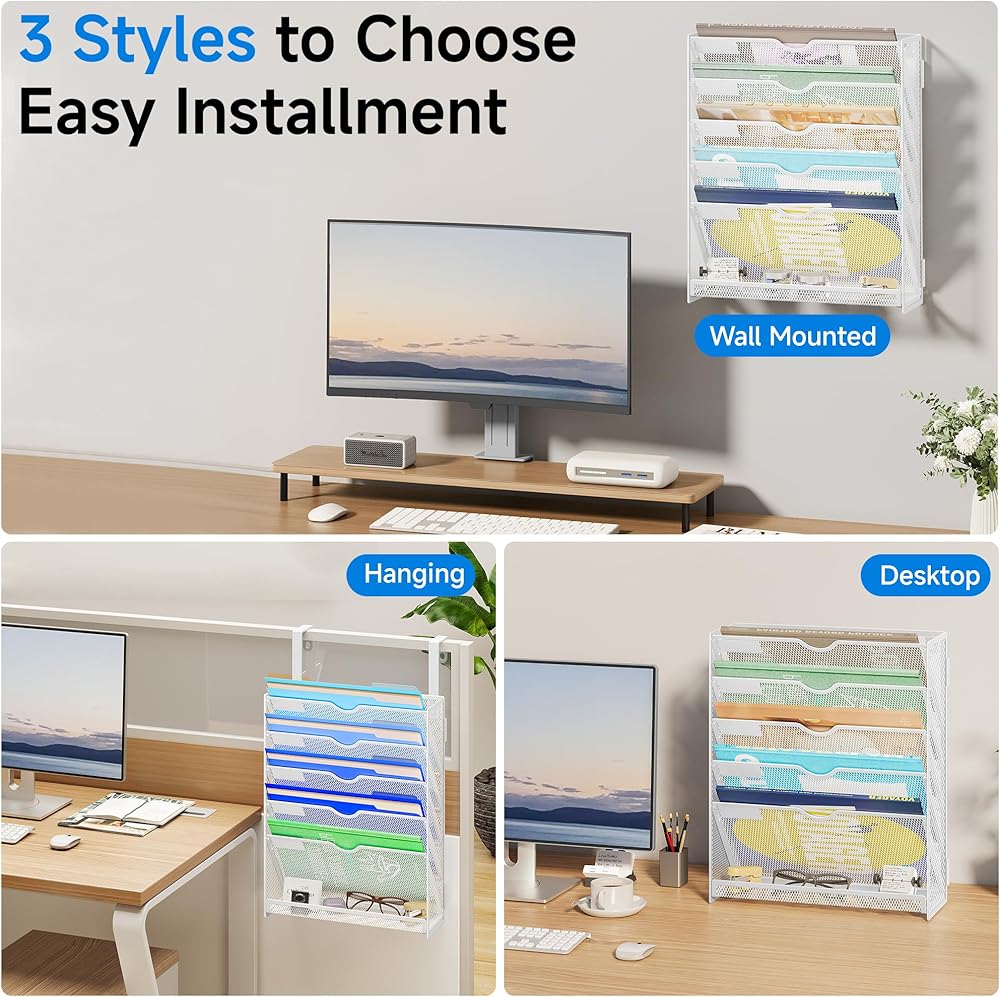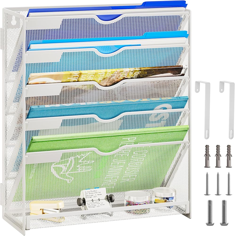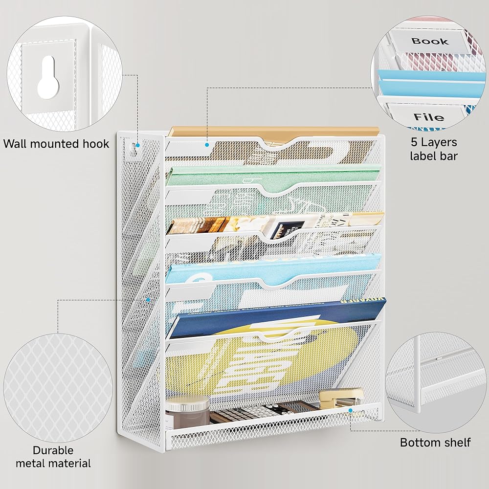 【حل لتوفير الفضاء】 الاستفادة القصوى من مساحتك الرأسية مع حامل الملف المثبت على الحائط هذا. يمكن إرفاقه بسهولة بالجدار ، مع الحفاظ على منزلك أو فوضى المكتب خالية من الفوضى.