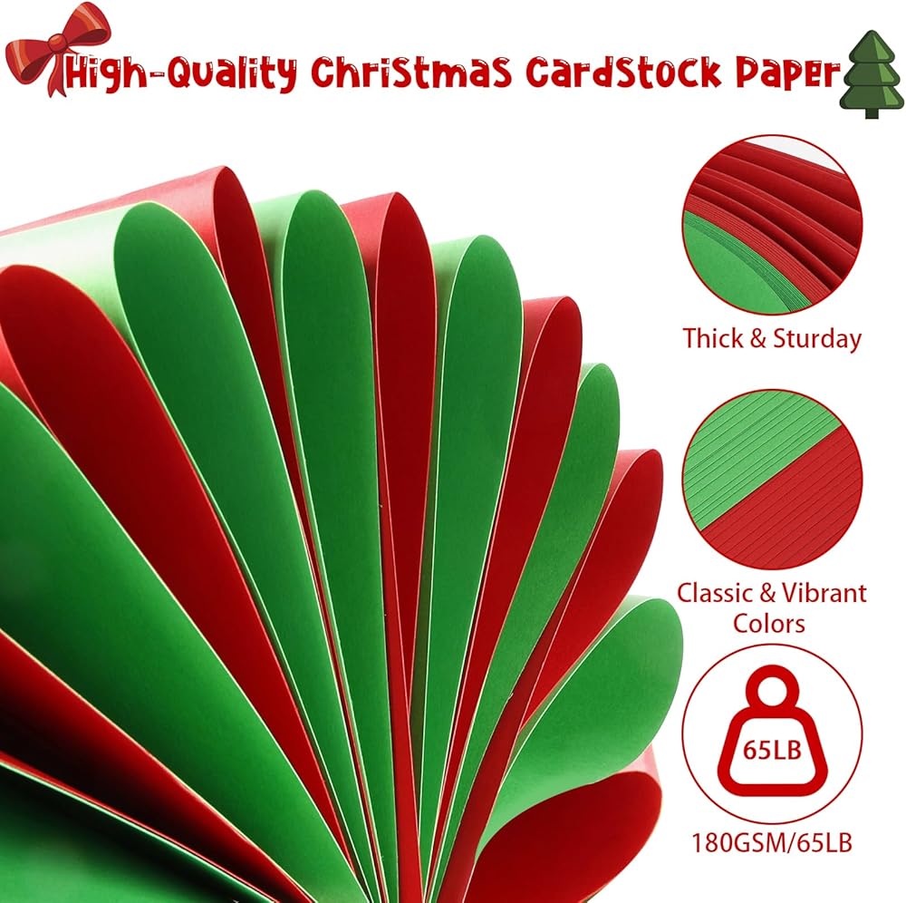 ألوان عيد الميلاد الاحتفالية: تتضمن هذه المجموعة 40 ورقة من ورقة بطاقة عيد الميلاد —20 أحمر و 20 أخضر. يجلب الاقتران الأحمر والأخضر الخالدة روحًا مبهجة احتفالية لحرف عطلتك