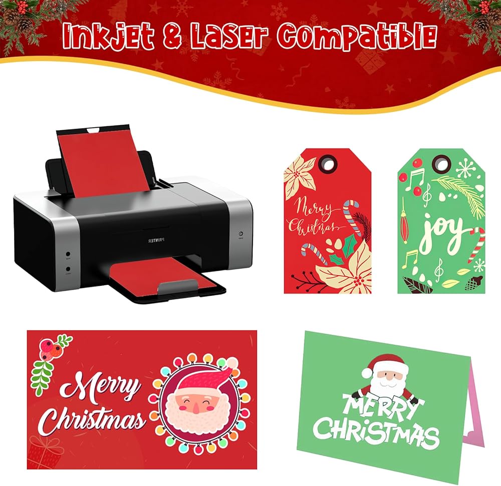 مثالي للطباعة: من السهل قطع هذه البطاقات واللكم والطي. إنه يطبع جيدًا على الطابعات الشاقة ويعمل مع آلات تقطيع الموت-وهو ما يتواجد لزخارف عيد الميلاد والبطاقات والدعوات