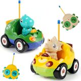 2 عبوة التحكم عن بُعد سيارة ديناصور لعبة للأطفال - هدايا عيد ميلاد للأطفال الصغار الذين تتراوح أعمارهم بين 18 شهرًا ، 2 3 4 4 سنوات ، مركبة Dino RC مع الأضواء والموسيقى