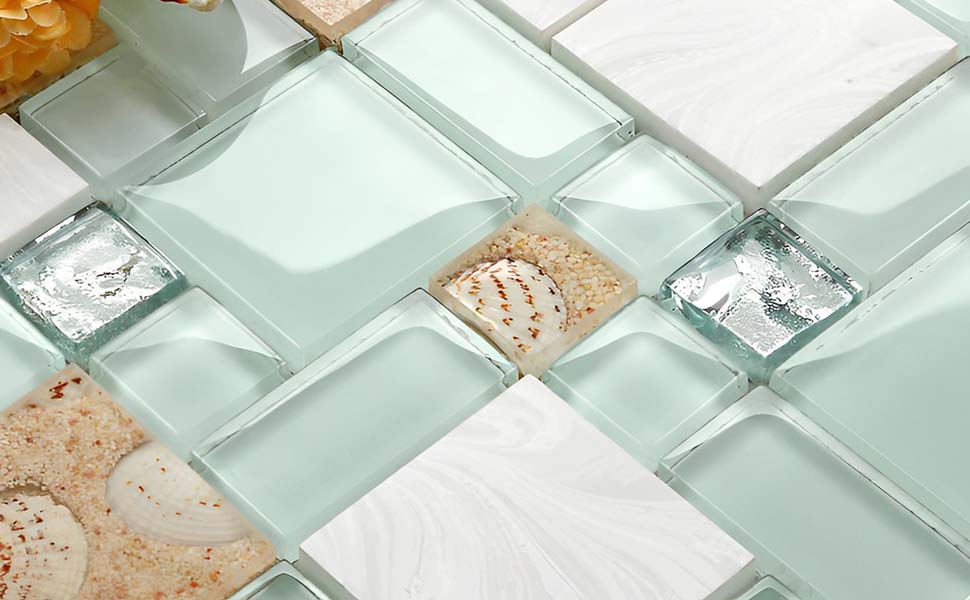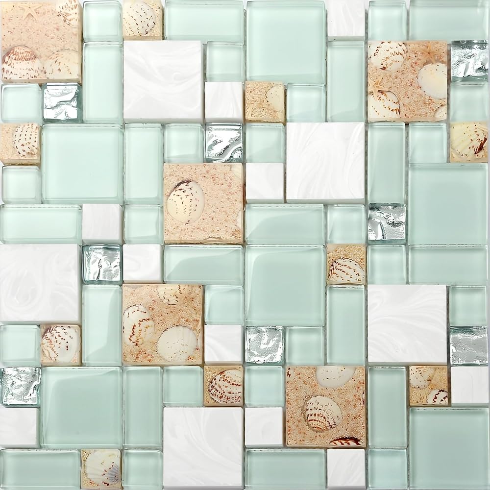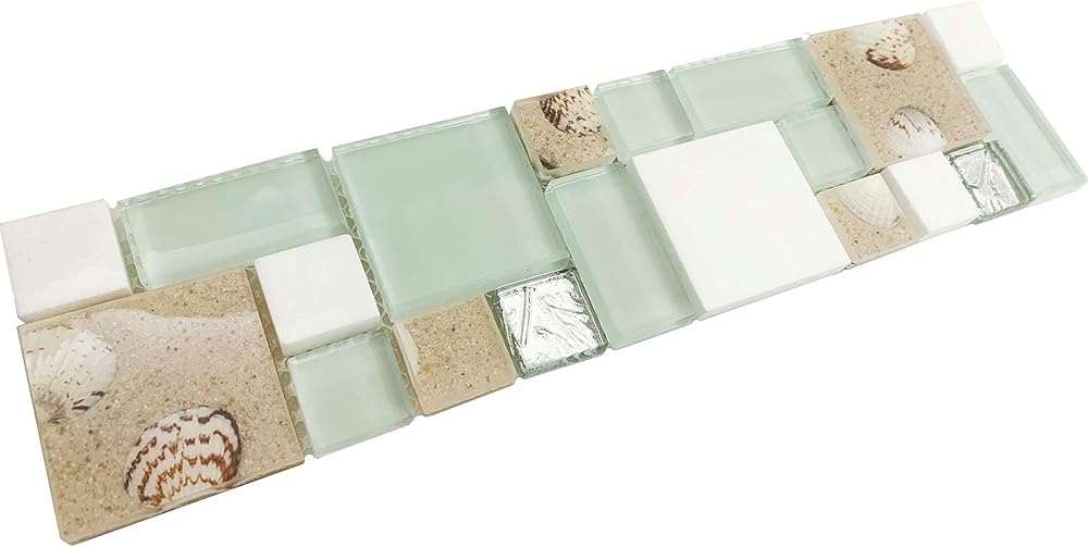 التصميم الساحلي الجمالي-يتميز بمزيج فريد من قوام الصدف الحقيقي ، والبيج الرملي ، والزجاج الأخضر المائي ، والدوامات البيضاء ، ولهجات المرآة لمظهر جديد مستوحى من الشاطئ.