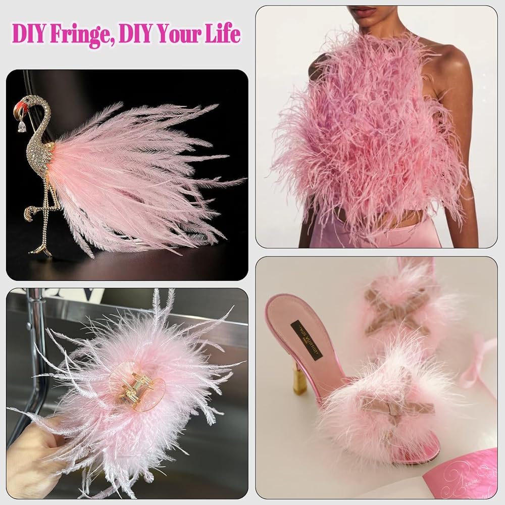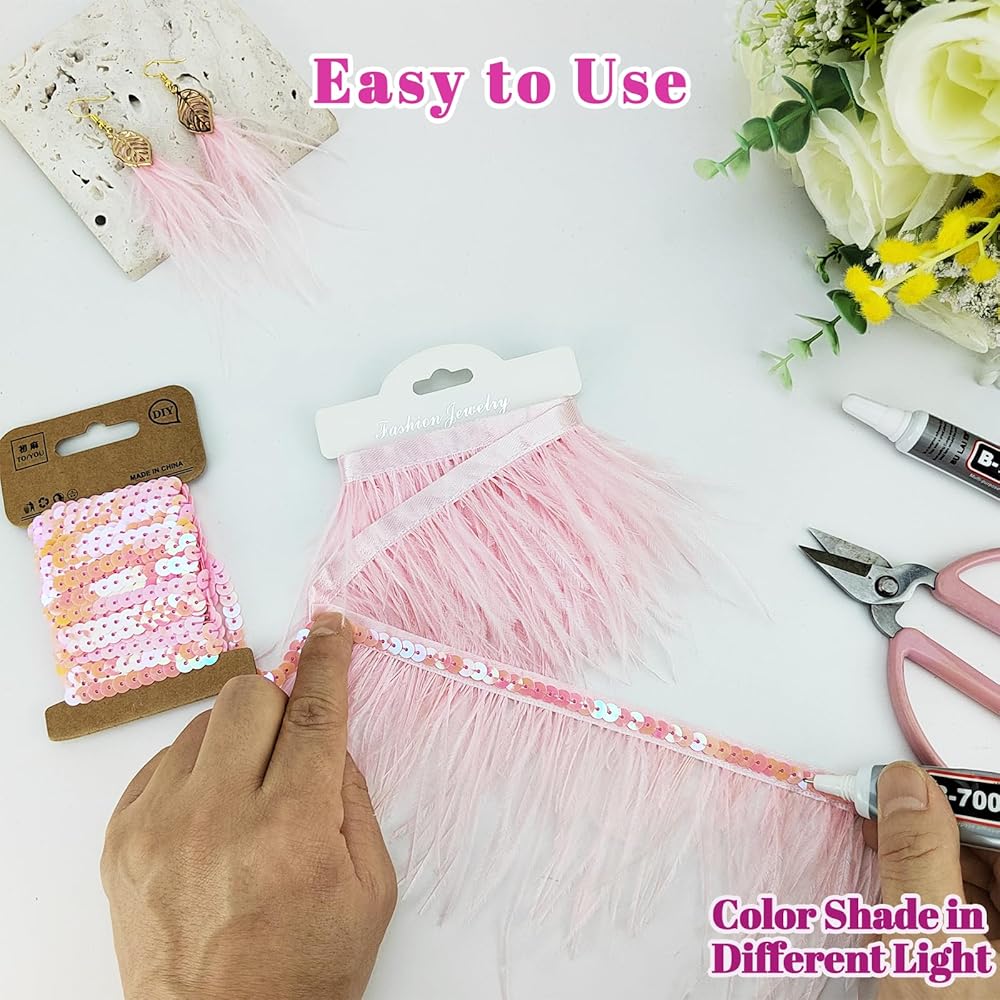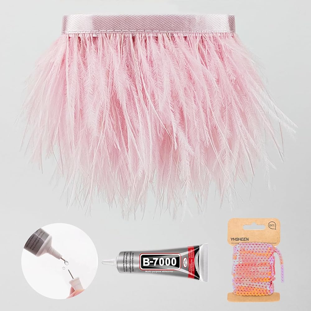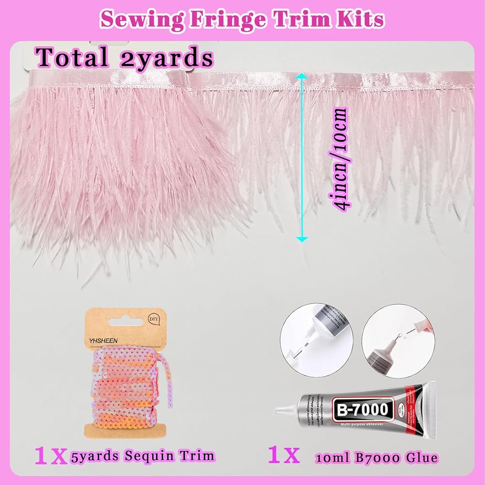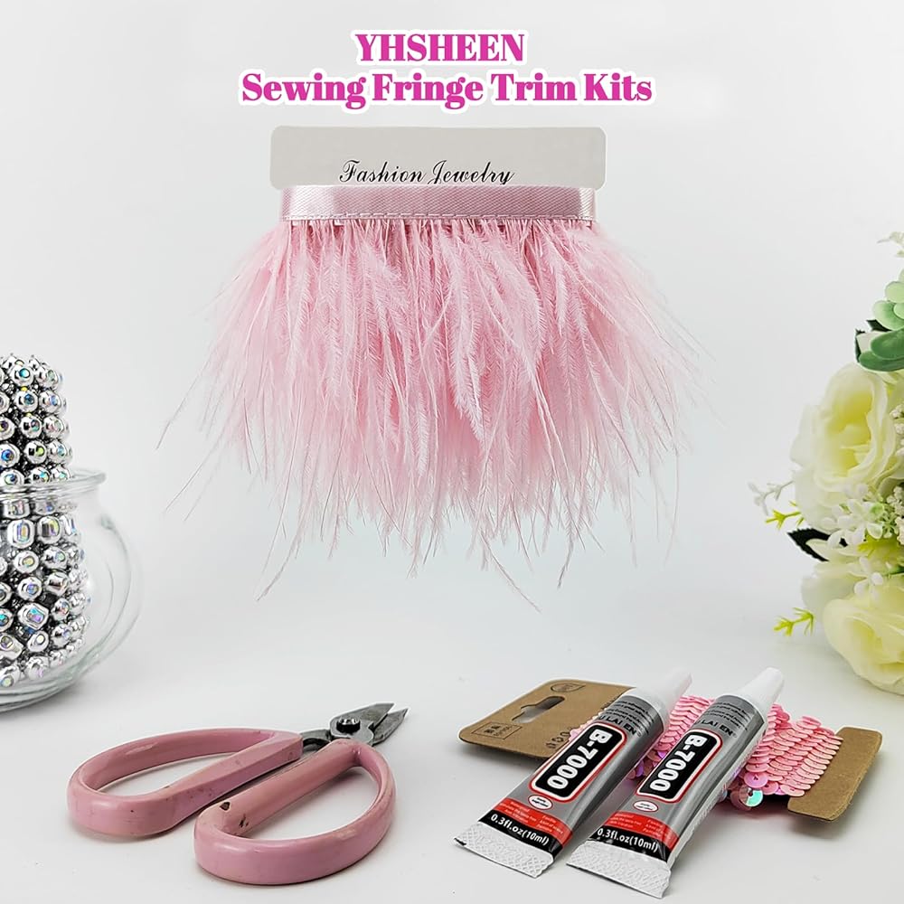 Ostrich Feather Trim DIY Making Kits: It includes fringe trim, 2pcs B7000 glue and 1pcs sequin trim.