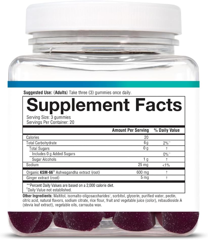 علكات الأشواغاندا من يوثيوري مع KSM-66، تساعد على تقليل التوتر، نكهة التوت الأزرق، 60 قطعة