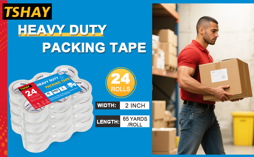 شريط تعبئة TSHAY ، 24 حزمة الشحن الشاق والتعبئة المتحركة ، واضحة ، تعبئة ، مستلزمات متحركة ، بعرض 2.0 بوصة ، 65 ياردة لكل لفة ، مجموع 1560 ياردة