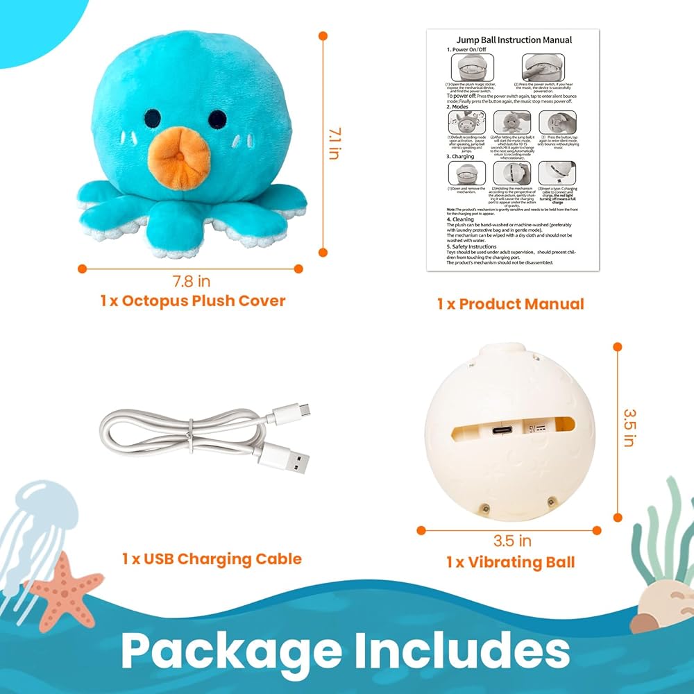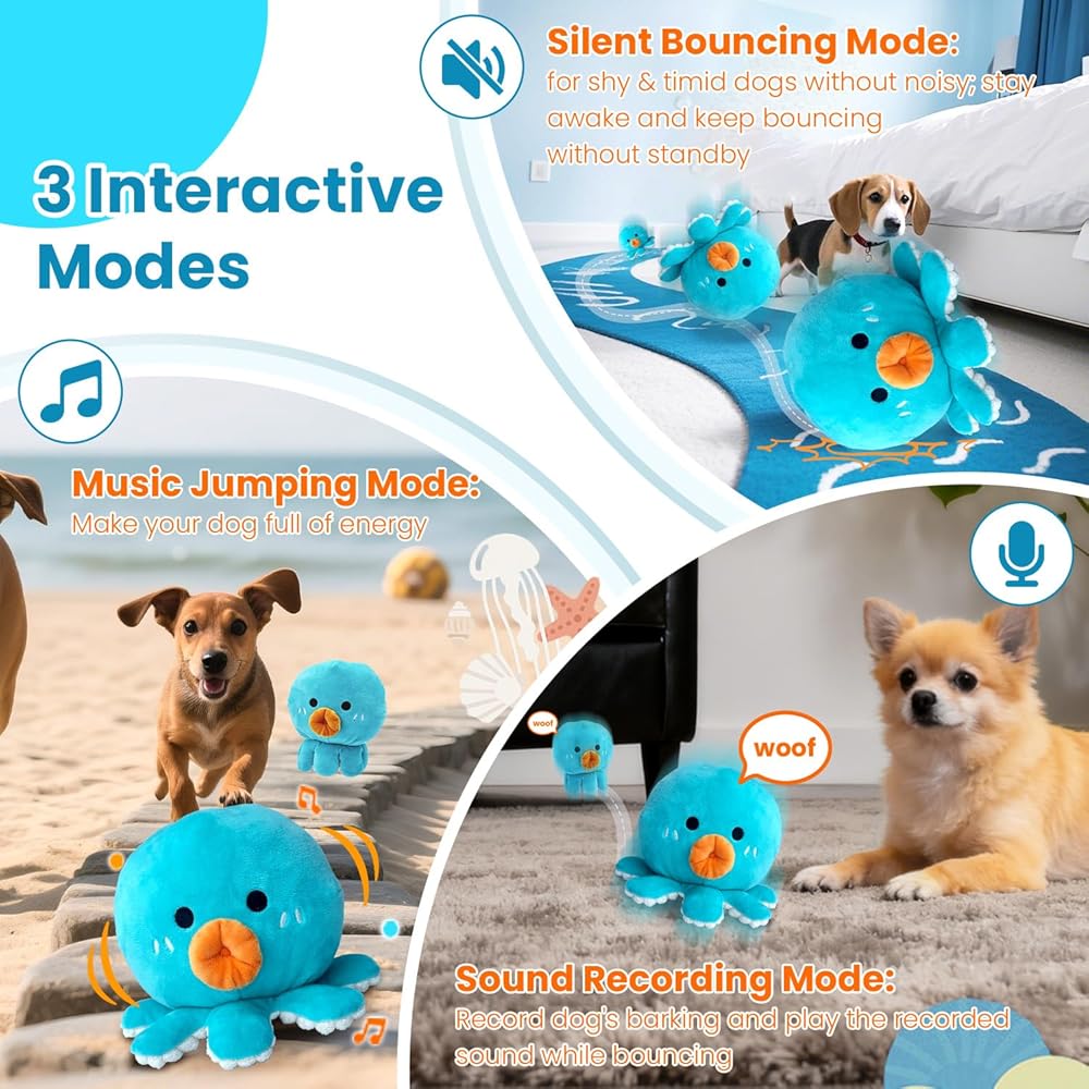 ألعاب تفاعلية للكلاب، [تم ترقيتها حديثًا] لعبة للكلاب المتحركة لإبقائها مشغولة، لعبة الكلاب النطاطة/كرة دوارة تصدر صوتًا مع موسيقى القفز، وضع صامت للكلاب الصغيرة والمتوسطة والكبيرة (ترقية الأخطبوط)