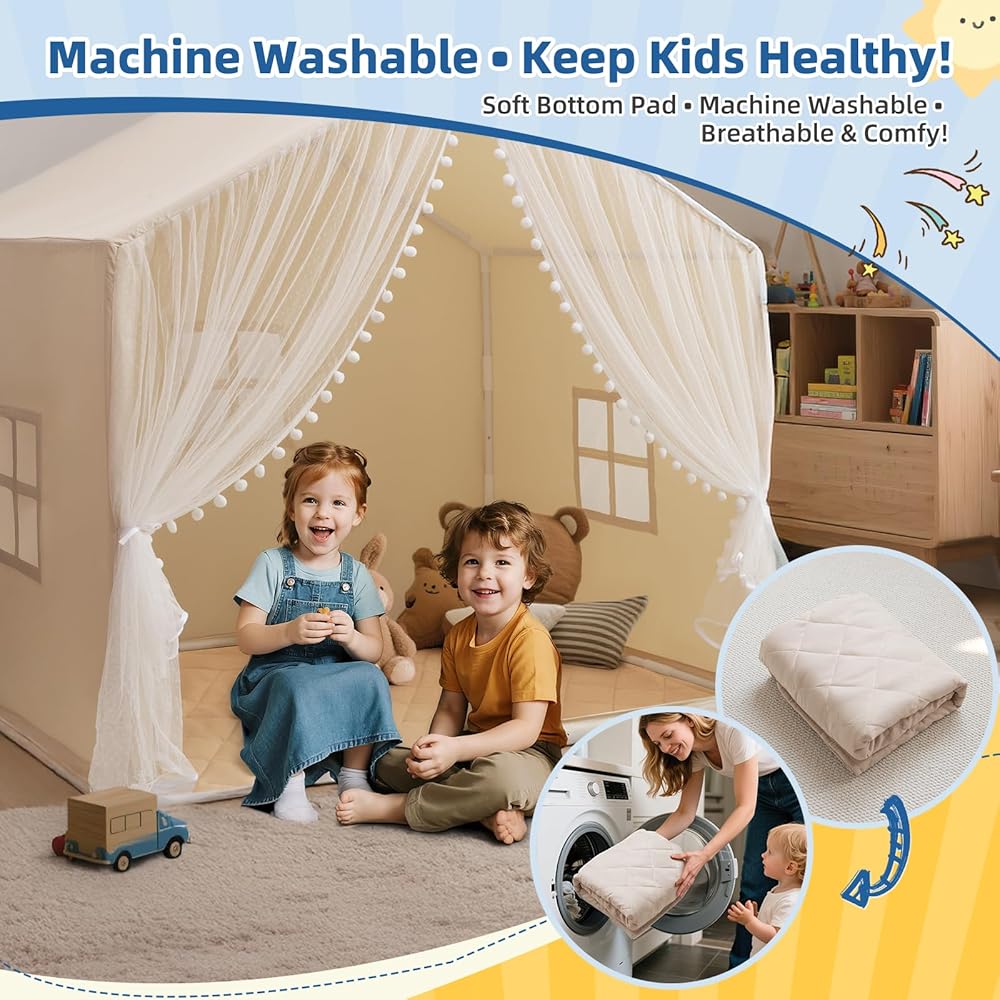من السهل التنظيف والصيانة: حصيرة مبطنة قابلة للإزالة وقابلة للغسل في الآلة ، في حين أن نسيج الخيمة ينظف بسهولة. يبقي هذه الأطفال يلعبون خيمة طازجة حتى بعد الاستخدام اليومي.