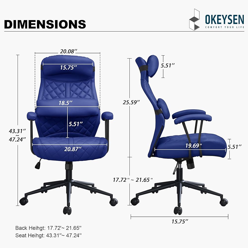 كرسي مكتب Okeysen الجلدي الحديثة ، كراسي قاعة المؤتمرات العالية في منتصف القرن متلقيان مع وسادة قابلة للإزالة ، كرسي المكتب التنفيذي المبطنة للمنزل ، المكتب.