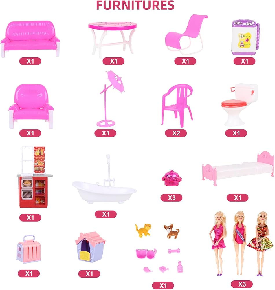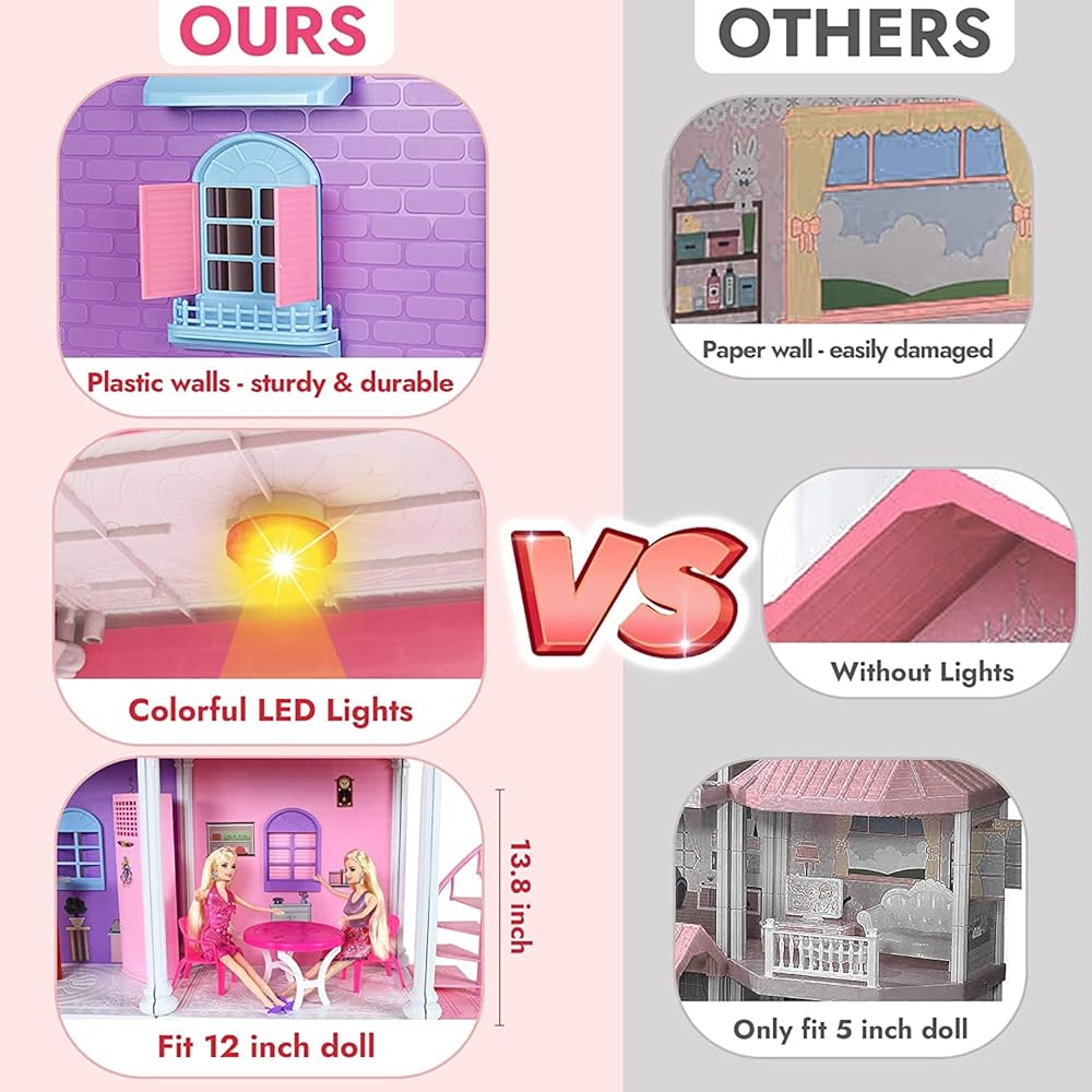 ABS Plastic Dollhouse: The Doll Doll House مصنوع بالكامل من بلاستيك ABS الكثيف ، لا توجد كرات من الورق المقوى ، وهو قوي قوي بما يكفي للعب طويل الأمد ويمنحهم الذهب وذكريات دائمة عن طفولتهم.