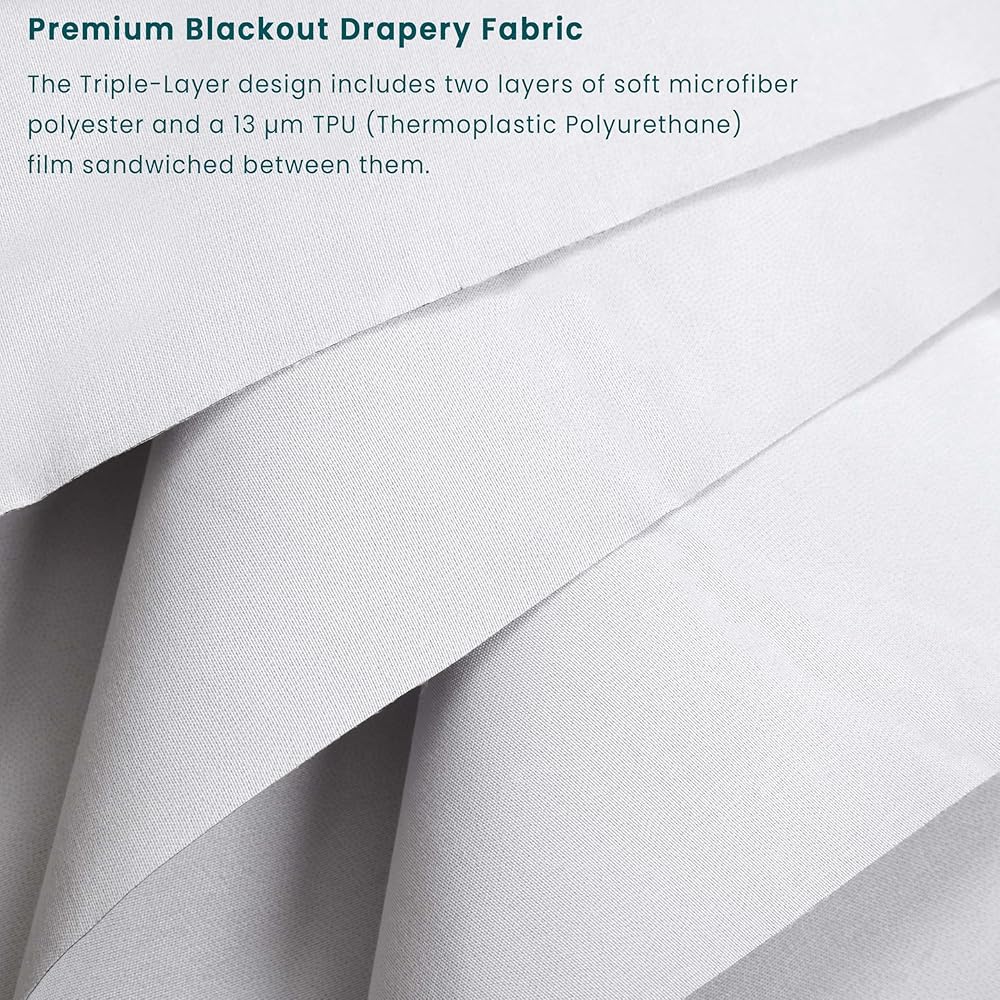 حظر ضوء تعتيم 100 ٪: نسيج ثلاثي الطبقة مع فيلم TPU 13 ميكرومتر يوفر إجمالي الغرفة. مثالية لستائر تعتيم في غرف النوم ودور الحضانة وغرف الإعلام والمزيد - تسدد الخصوصية والنوم المريح