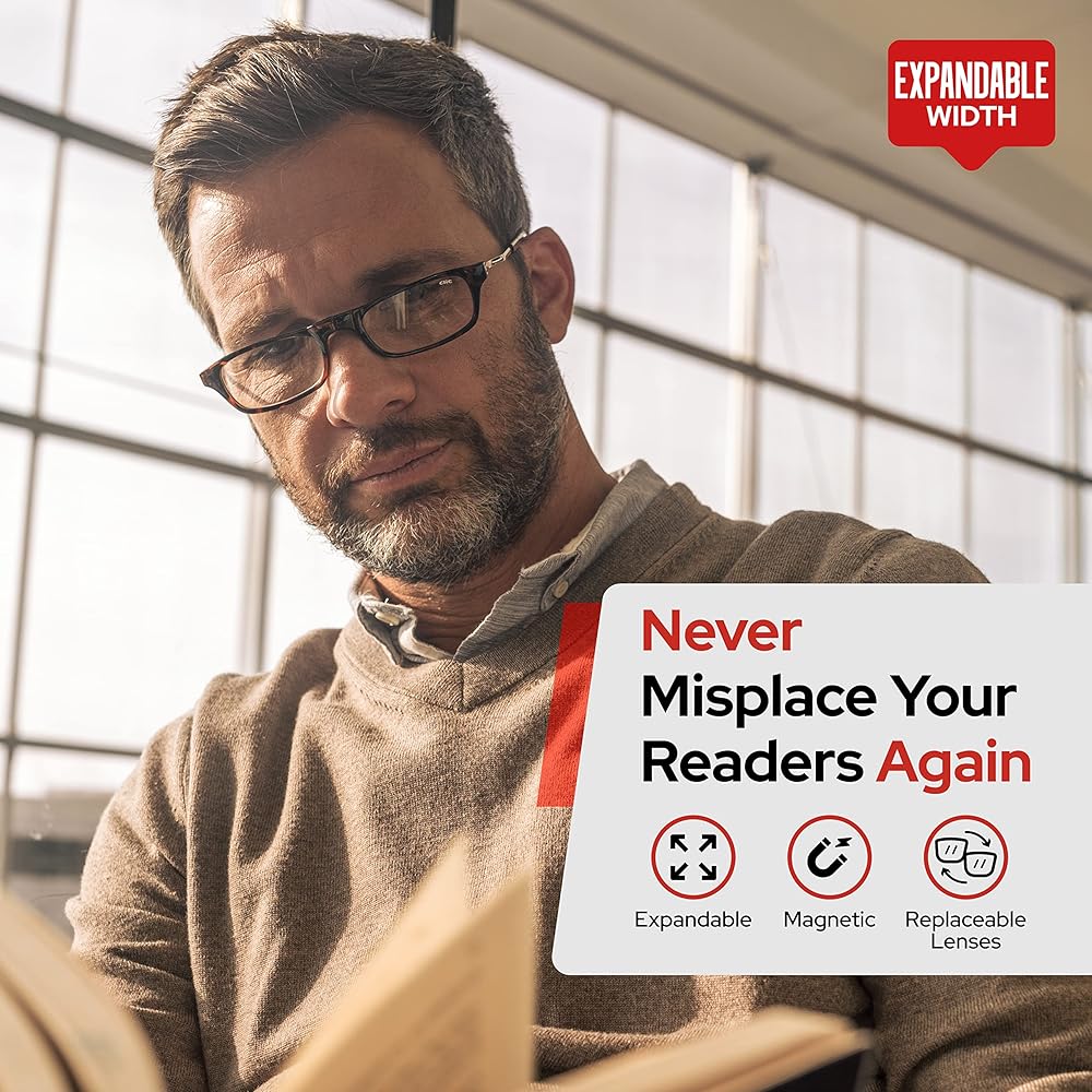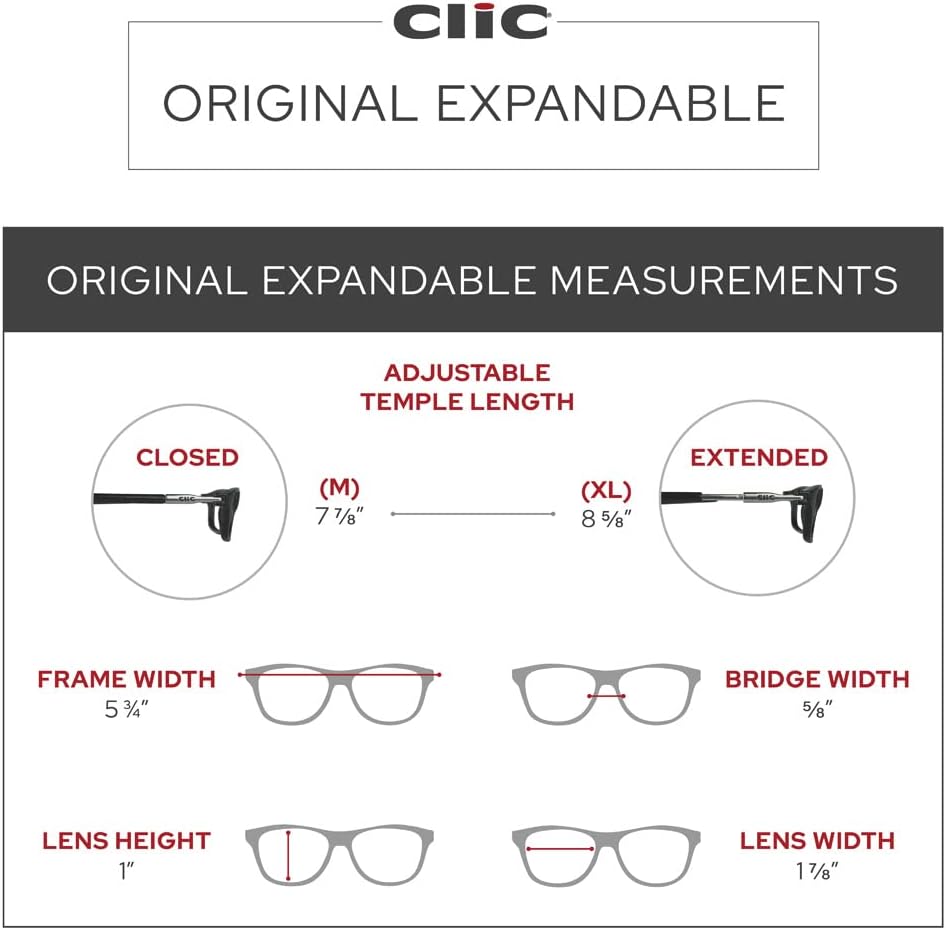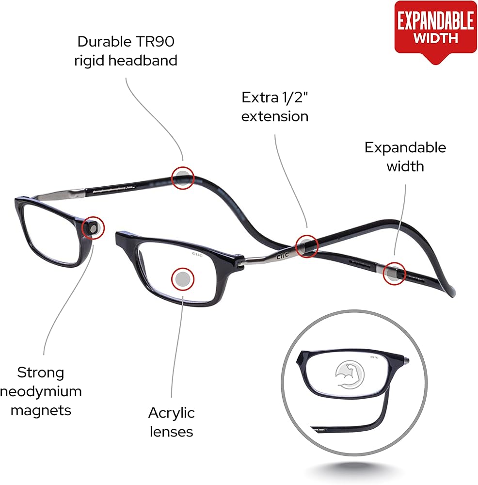 نظارات قراءة مغناطيسية من كليك (قابلة للتوسيع)، قارئات كمبيوتر قابلة للتعديل، أصلية قابلة للتوسيع، (أسود، تكبير 1.75)