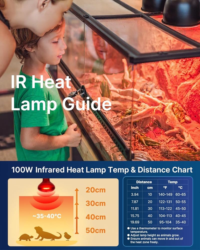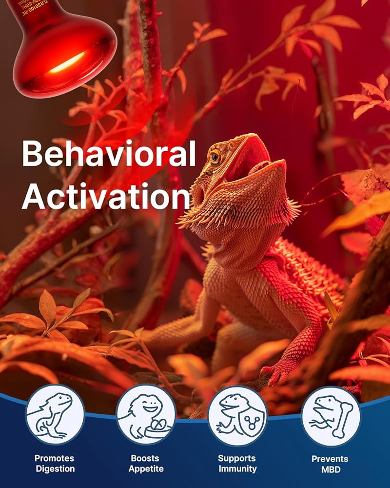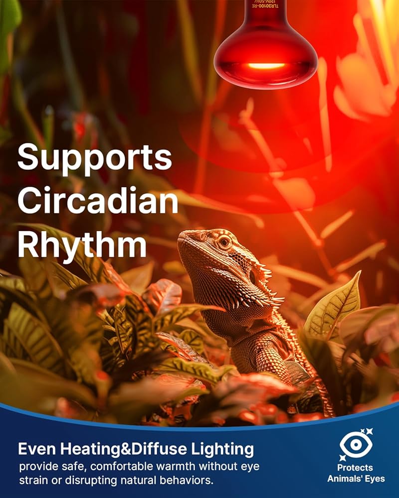 تسخين آمن وفعال: يمكن لمبة ضوء التدفئة الحمراء أن توفر حرارة كافية للزواحف 24/7 ، مما يسمح للحيوانات الأليفة بتنظيم درجة حرارة الجسم أو الحفاظ