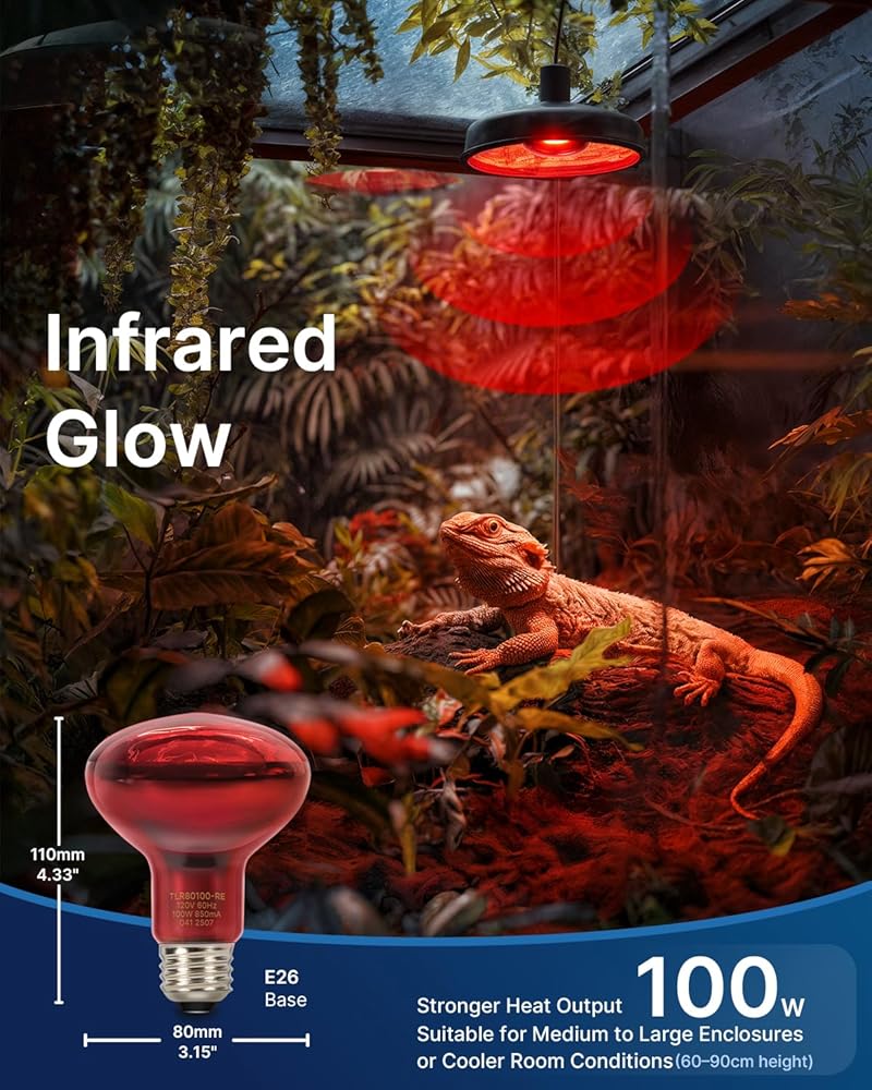 مصباح البقعة المتسابطة بالأشعة تحت الحمراء: يستخدم لمبة تسخين الزواحف الضوء بالأشعة تحت الحمراء لزيادة درجة الحرارة الإجمالية للتراريوم ، مما يساعد