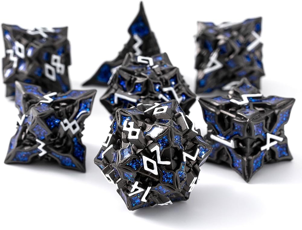 مجموعة كاملة-تشمل مجموعة الزهر المتعددة السطوح المكونة من 7 قطع D20 و D12 و D10 و D ٪ و D8 و D6 و D4. كل مجموعة تأتي في حقيبة الرباط المتميزة لسهولة التخزين والنقل. متوافق مع D&D و Pathfinder و RPG الأخرى والحملات المخصصة.