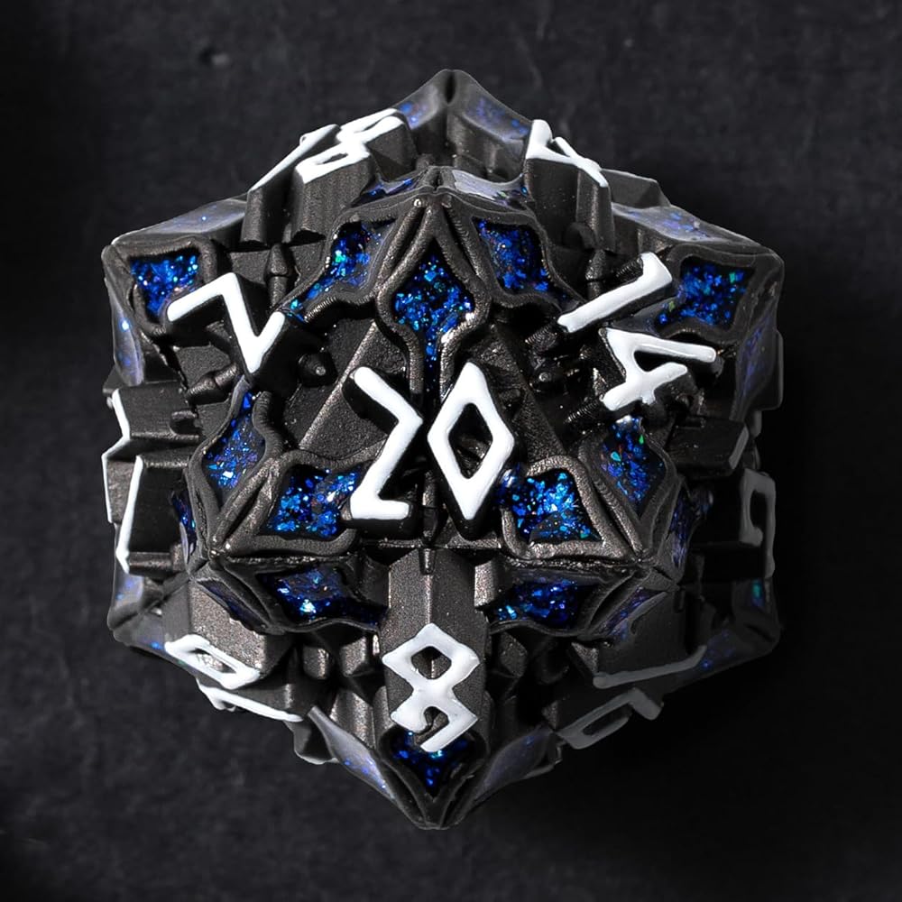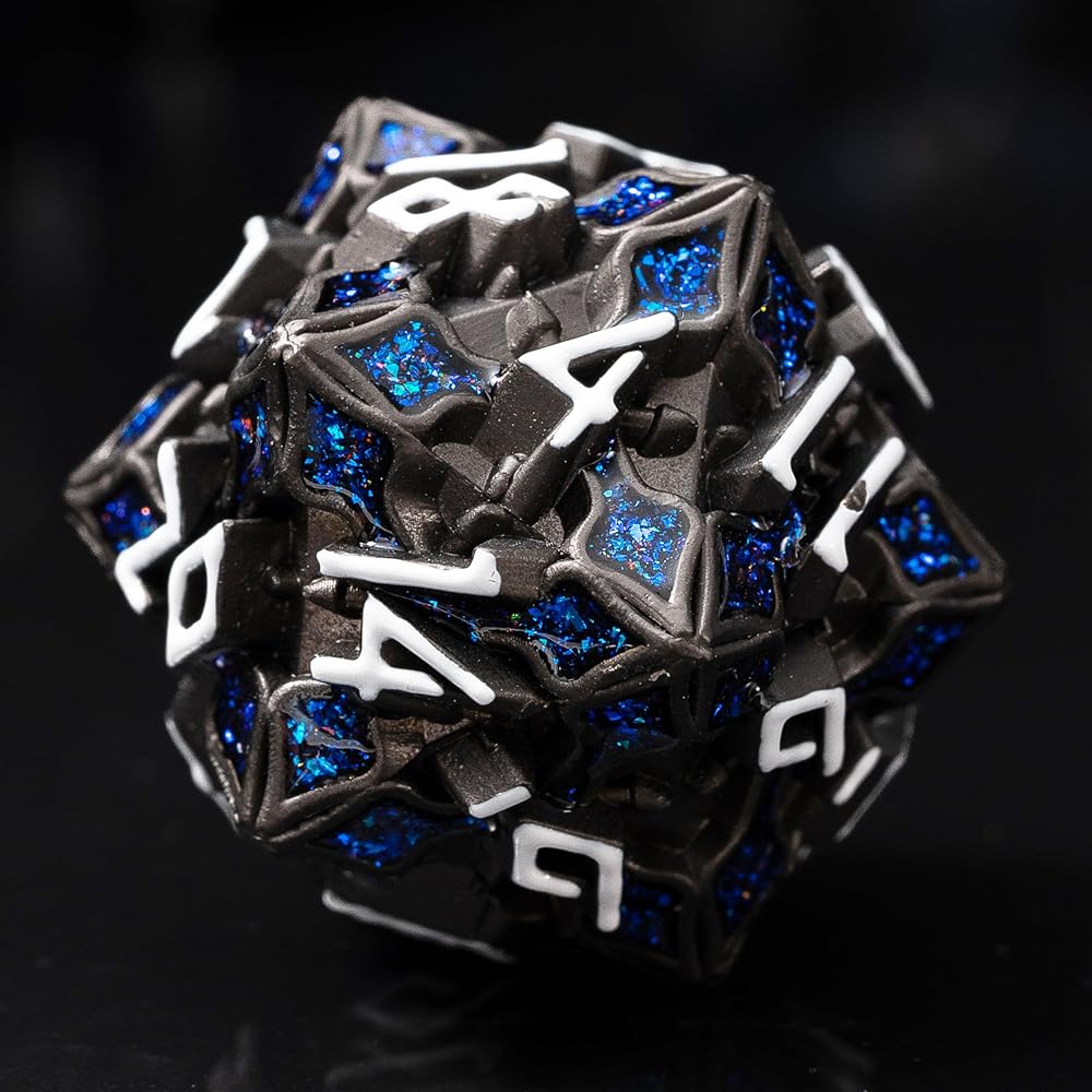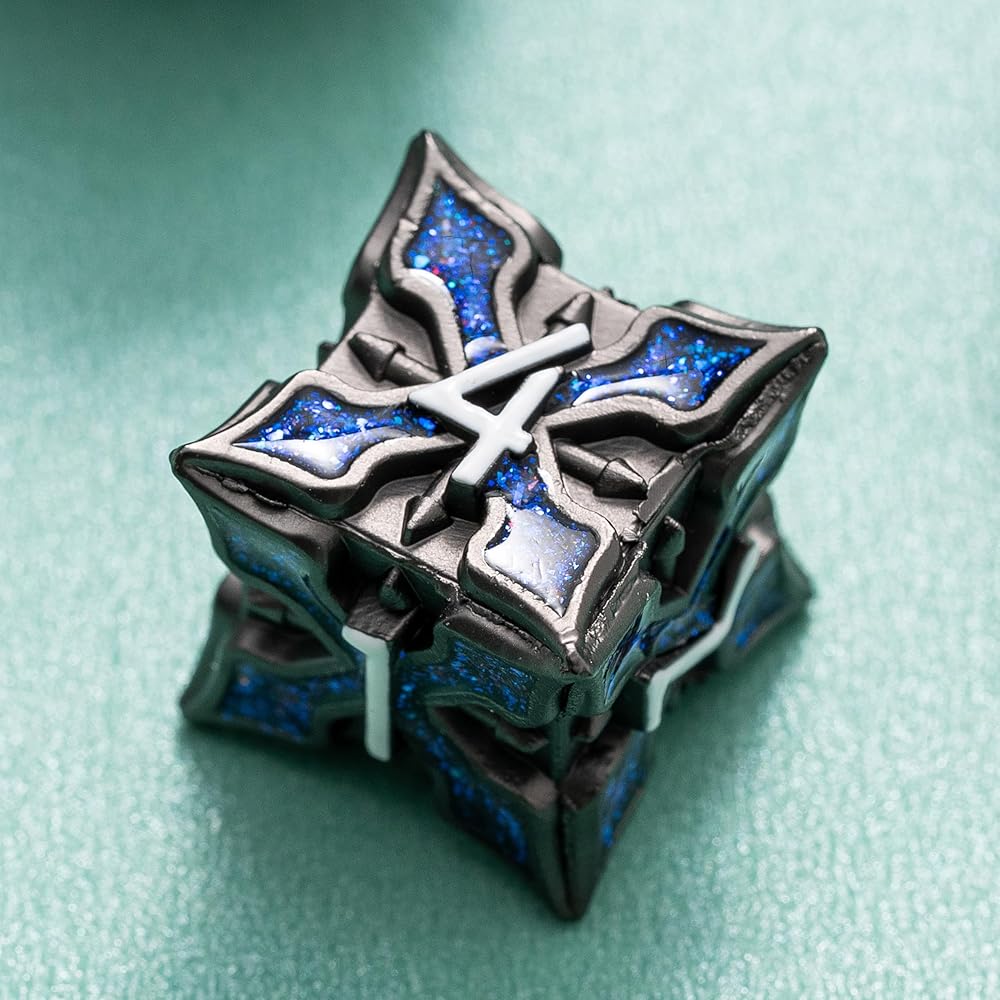 التواجد الصوفي - أمر الجدول مع هذه القطع الأثرية الزهر المعدنية الموزونة. يعرض كل وجه أرقامًا بلورية. تلتقي الأنماط الهندسية المميزة بشكل كبير مع الحفاظ على قابلية القراءة المثالية.