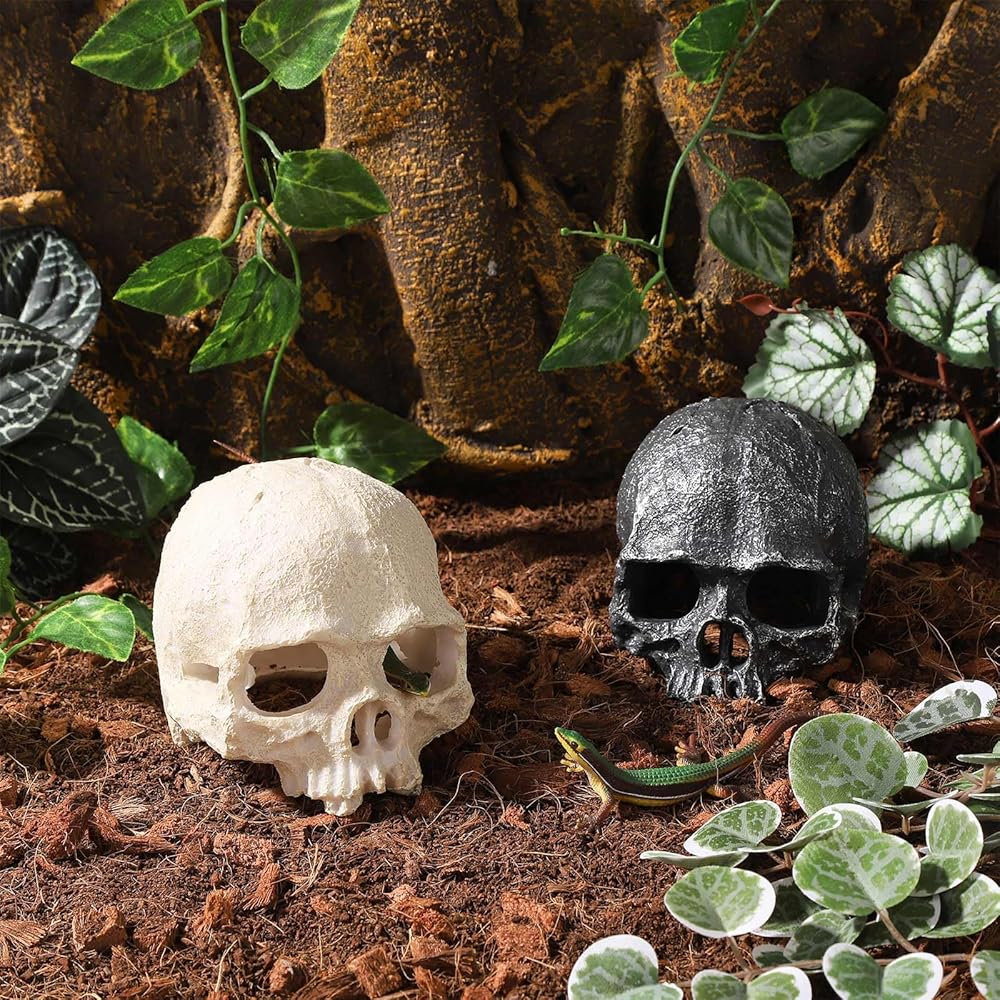 Suitable for various reptiles - With the unique skull shape, this small snake hide not only ensures practically, but also adds a distinctive visual highlight to your pets' living space, combining both functionality and decorativeness. And the moderate size can be flexibly adapted to various terrariums, which is suitable for a variety of reptile pets, like lizards, snakes, fish, axolotl, tarantula, etc., allowing your pets to rest at ease.